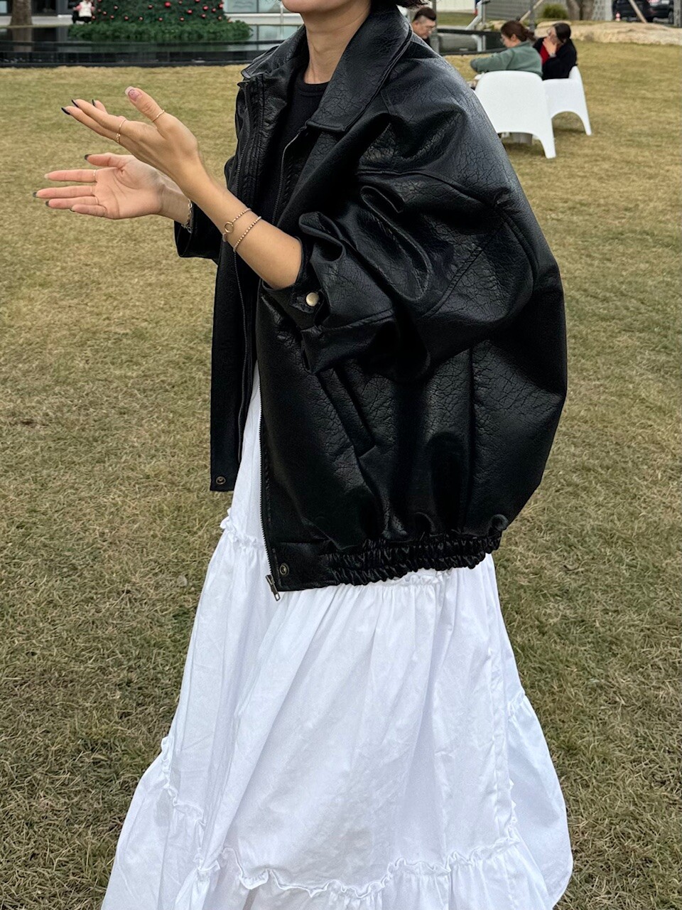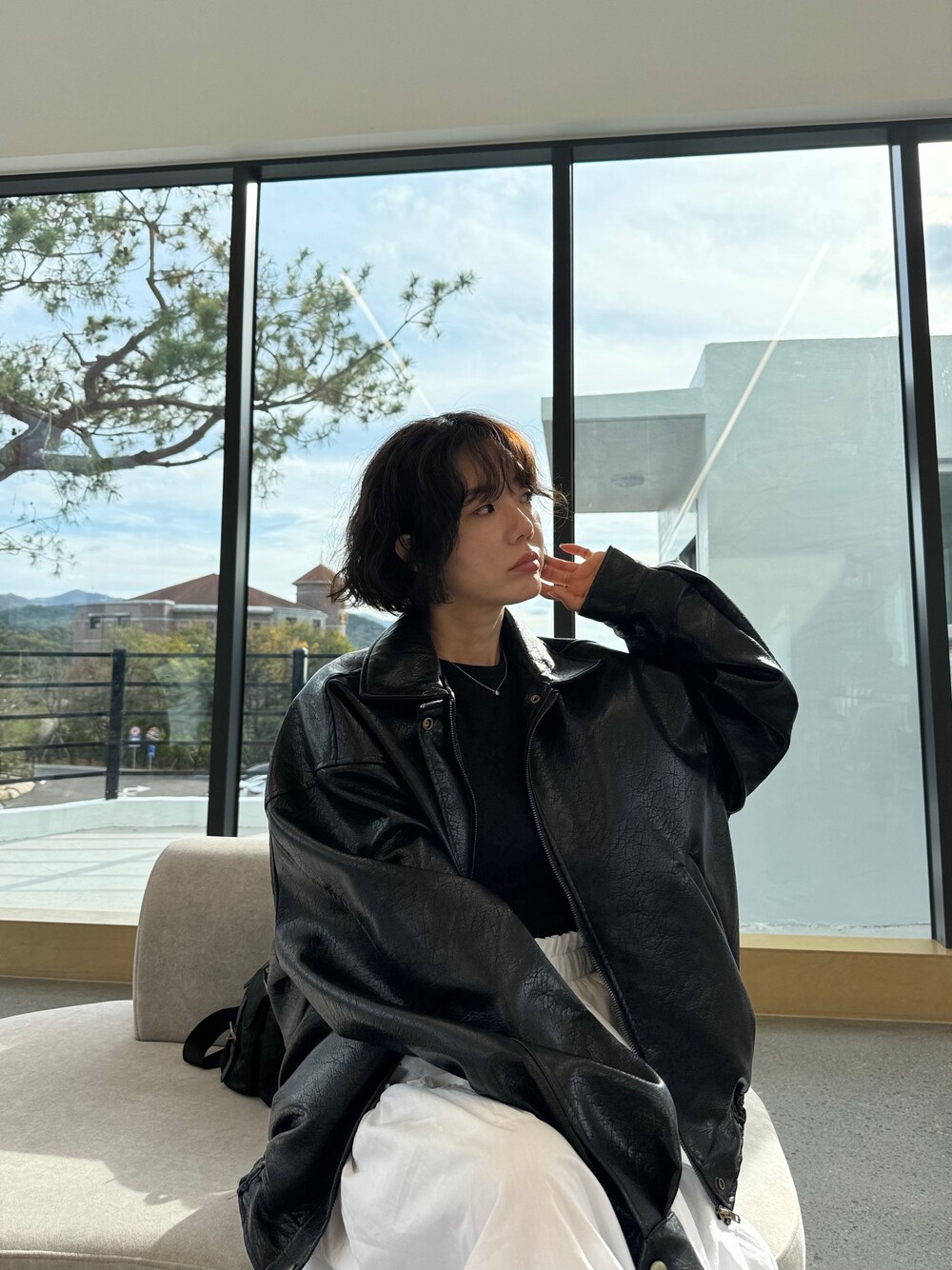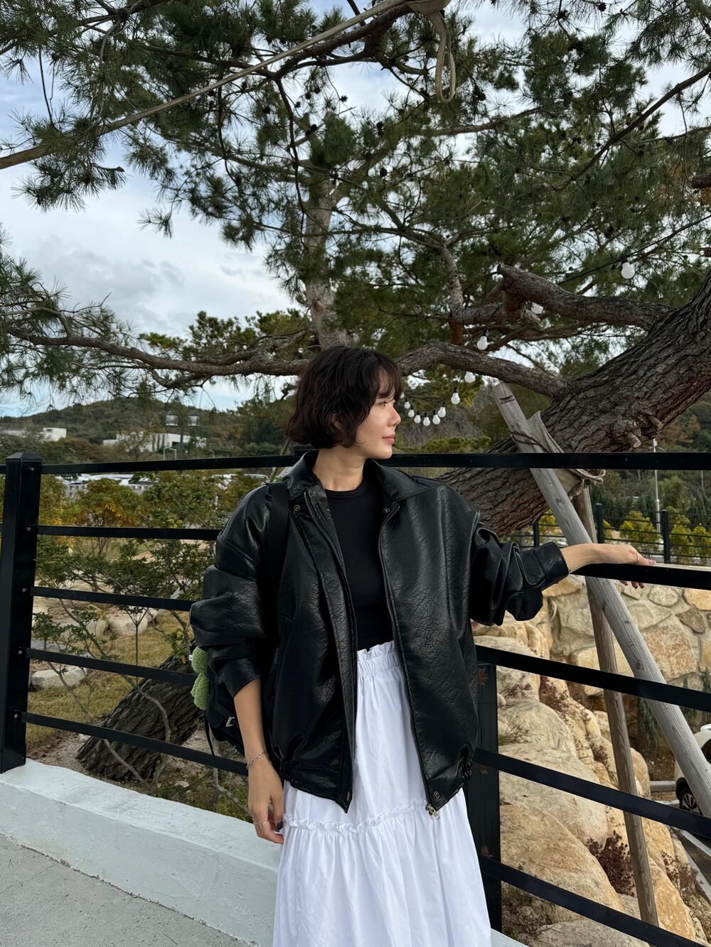 남녀 공용 입으실 수 있는 카우 블루종 레더 점퍼