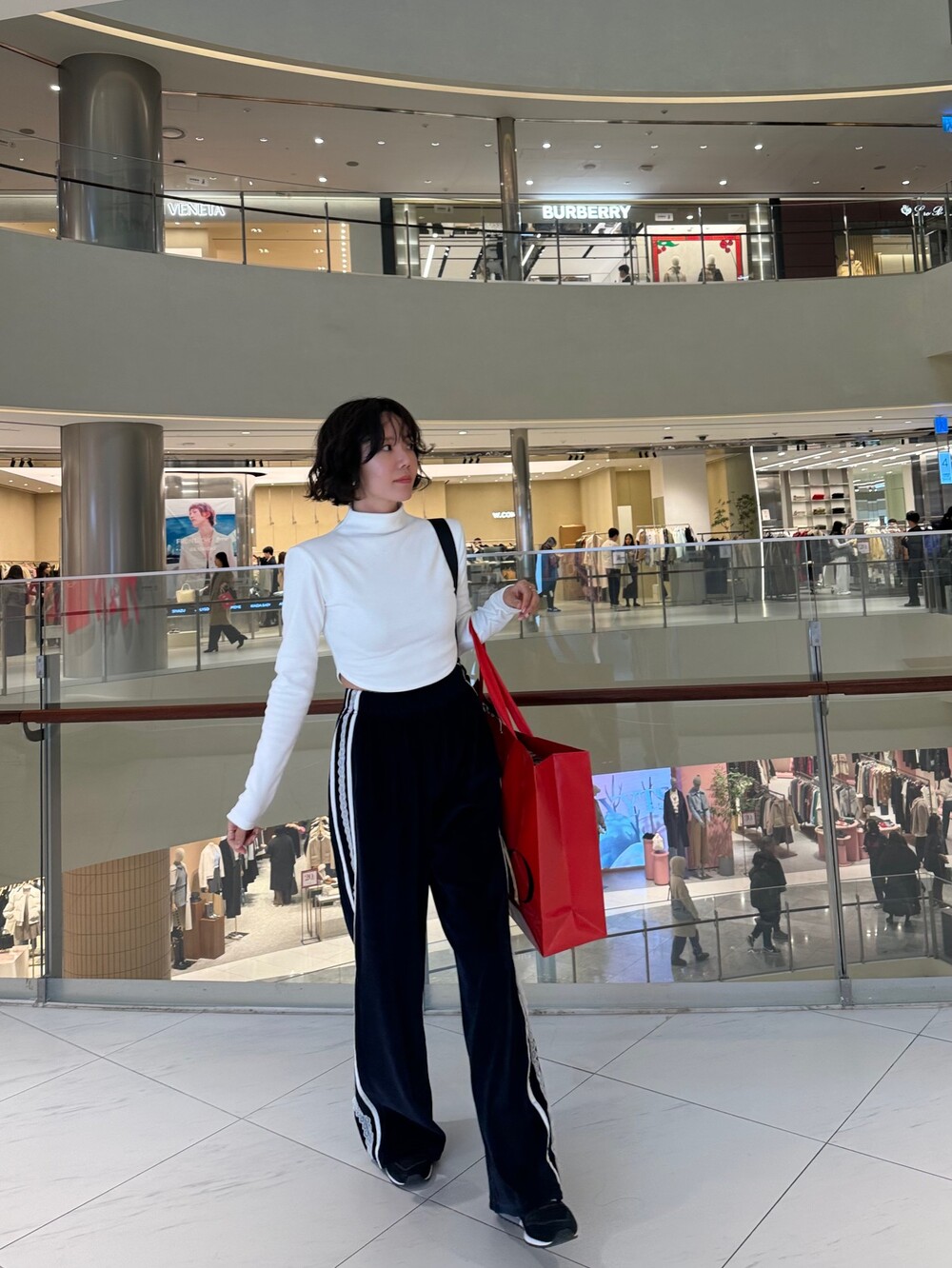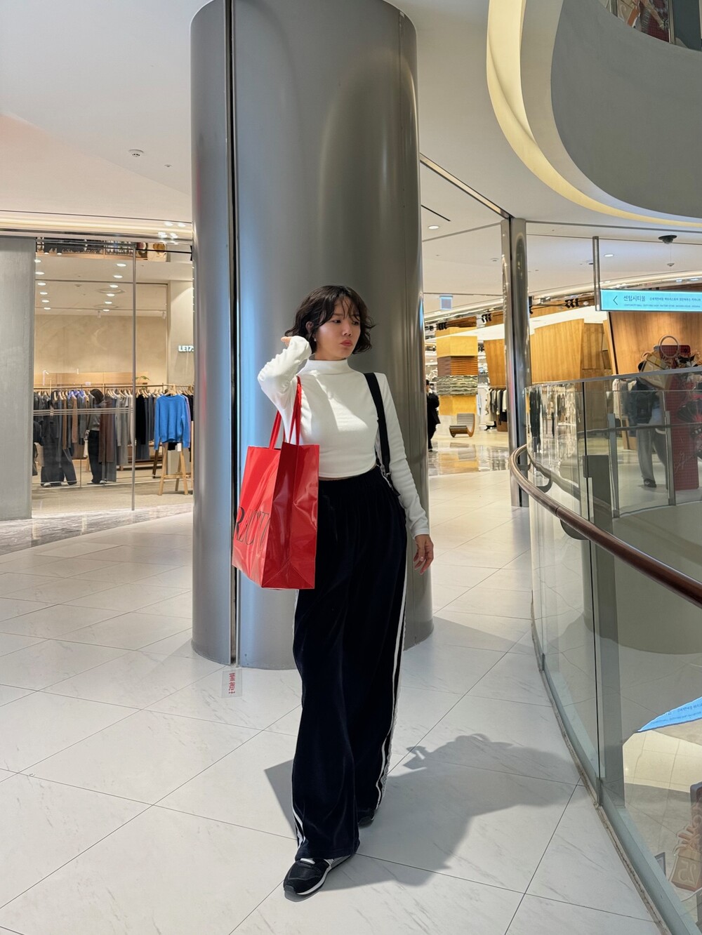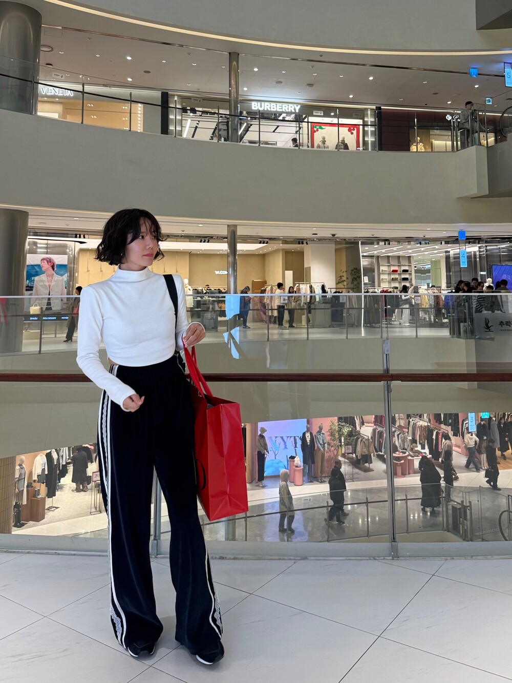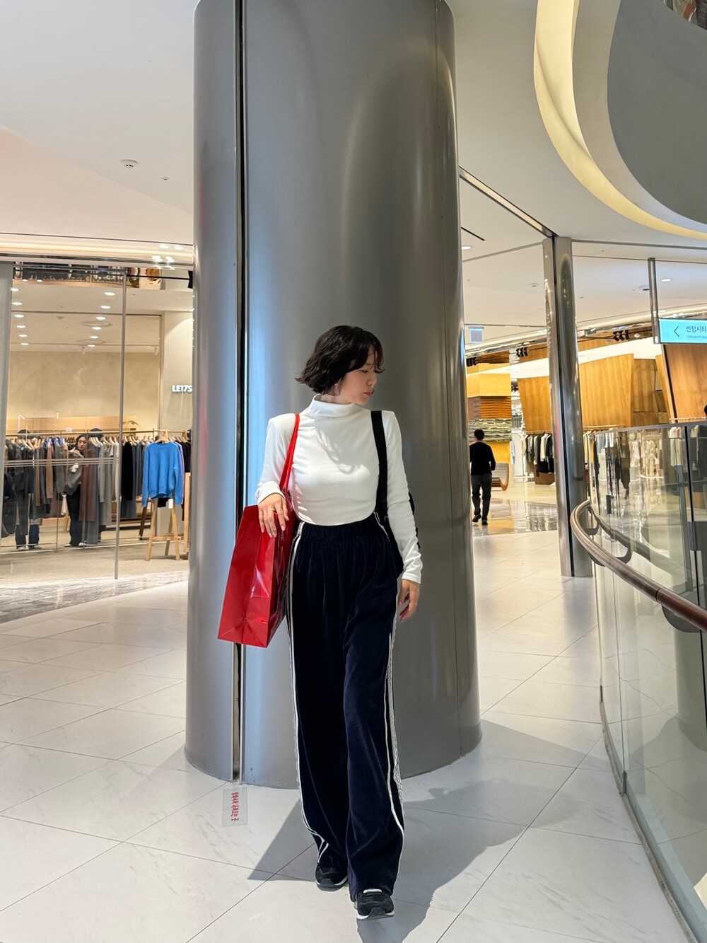 특징: 신축성 O, 비침 X, 안감 X , 두께감 보통, 무게감 보통