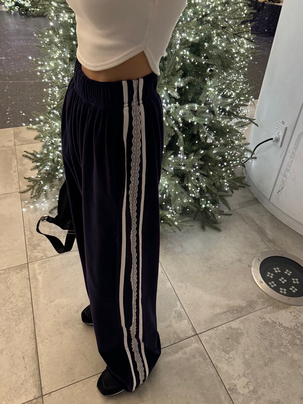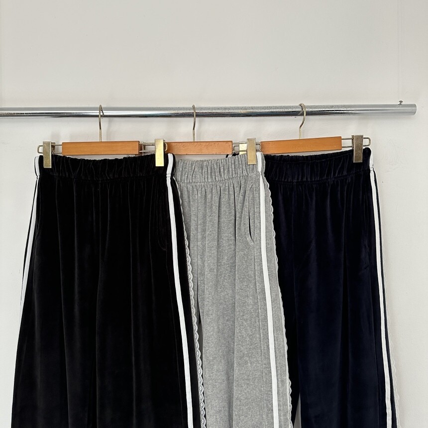 코튼벨벳 소재로 나온 레이스 트랙팬츠