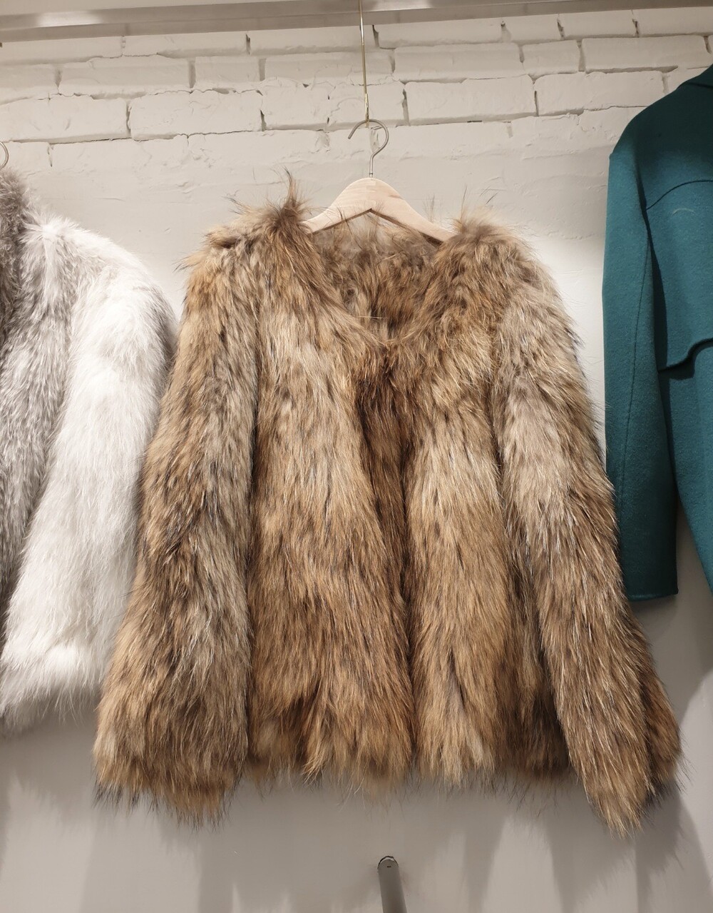 리얼 라쿤 핸드메이드 내추럴 니팅 자켓 파격가