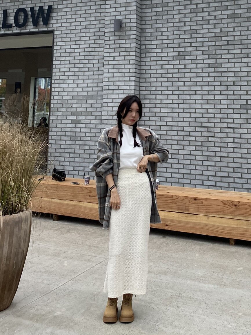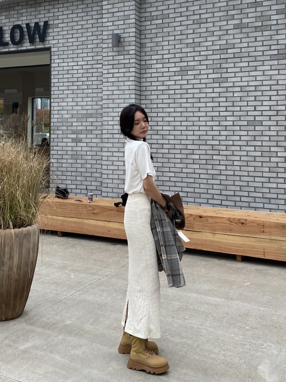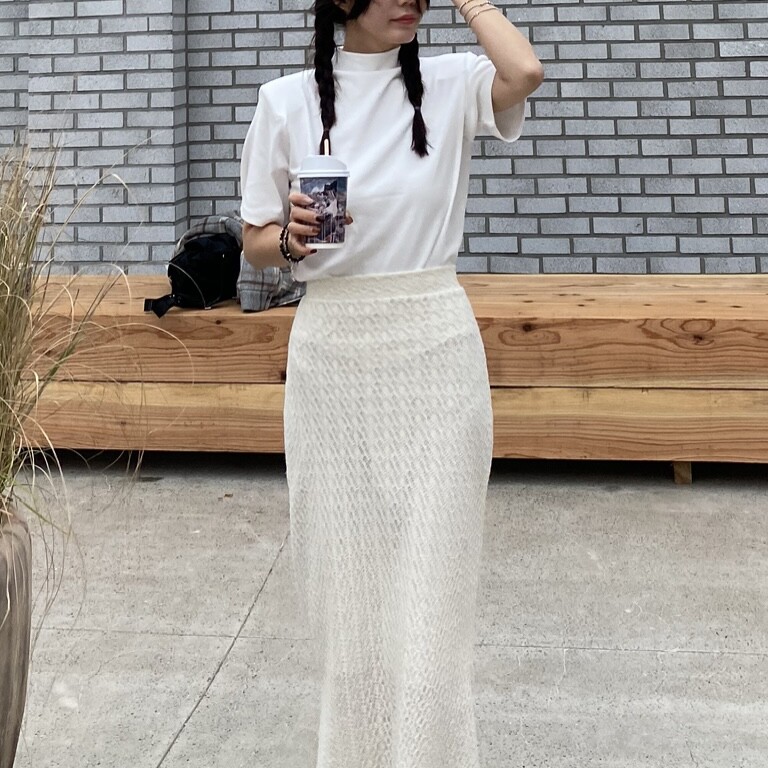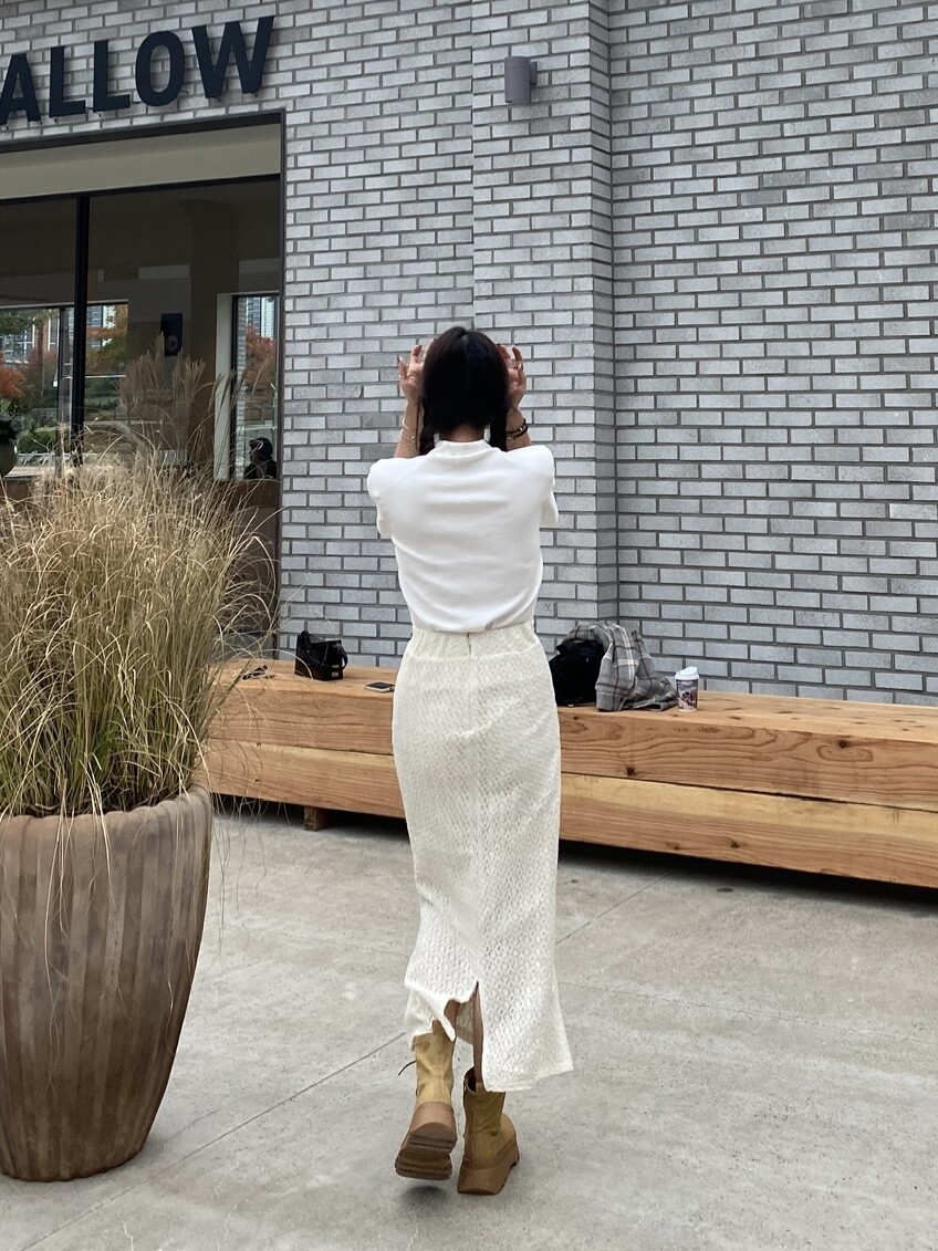 롱한 기장감의 자수 밴딩 롱스커트예요