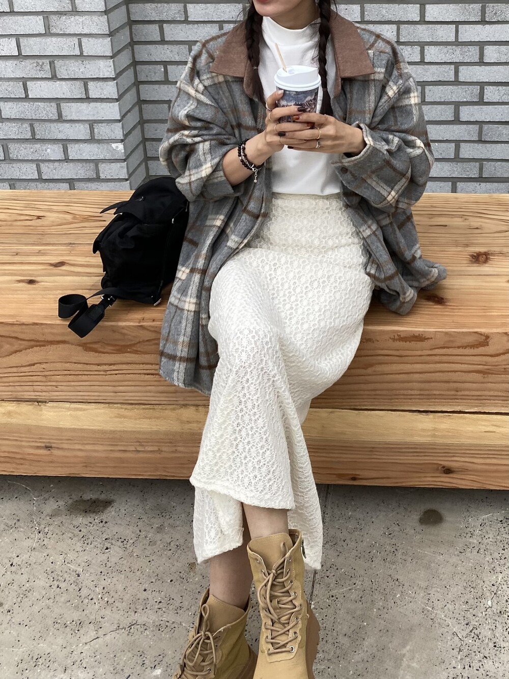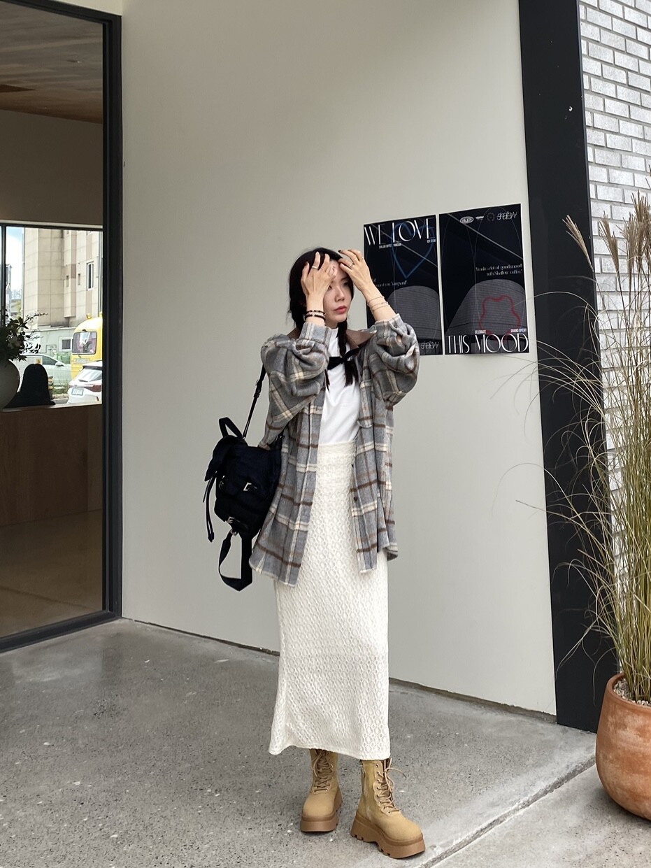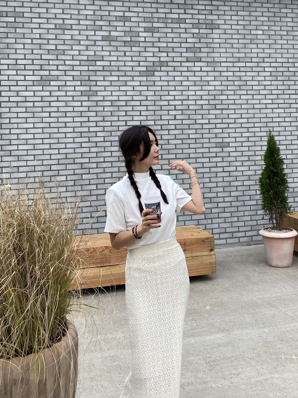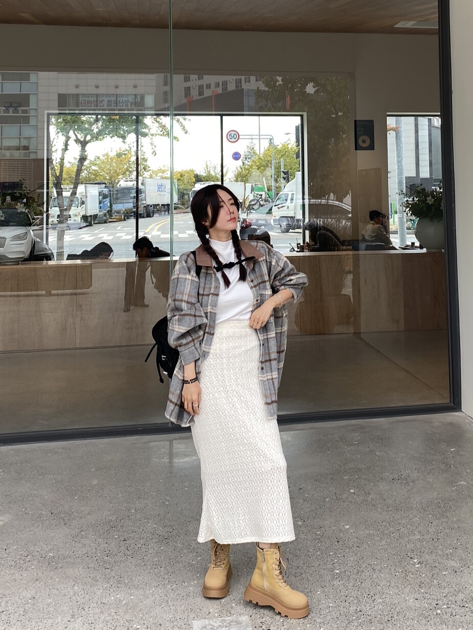 롱한 기장감의 자수 밴딩 롱스커트예요