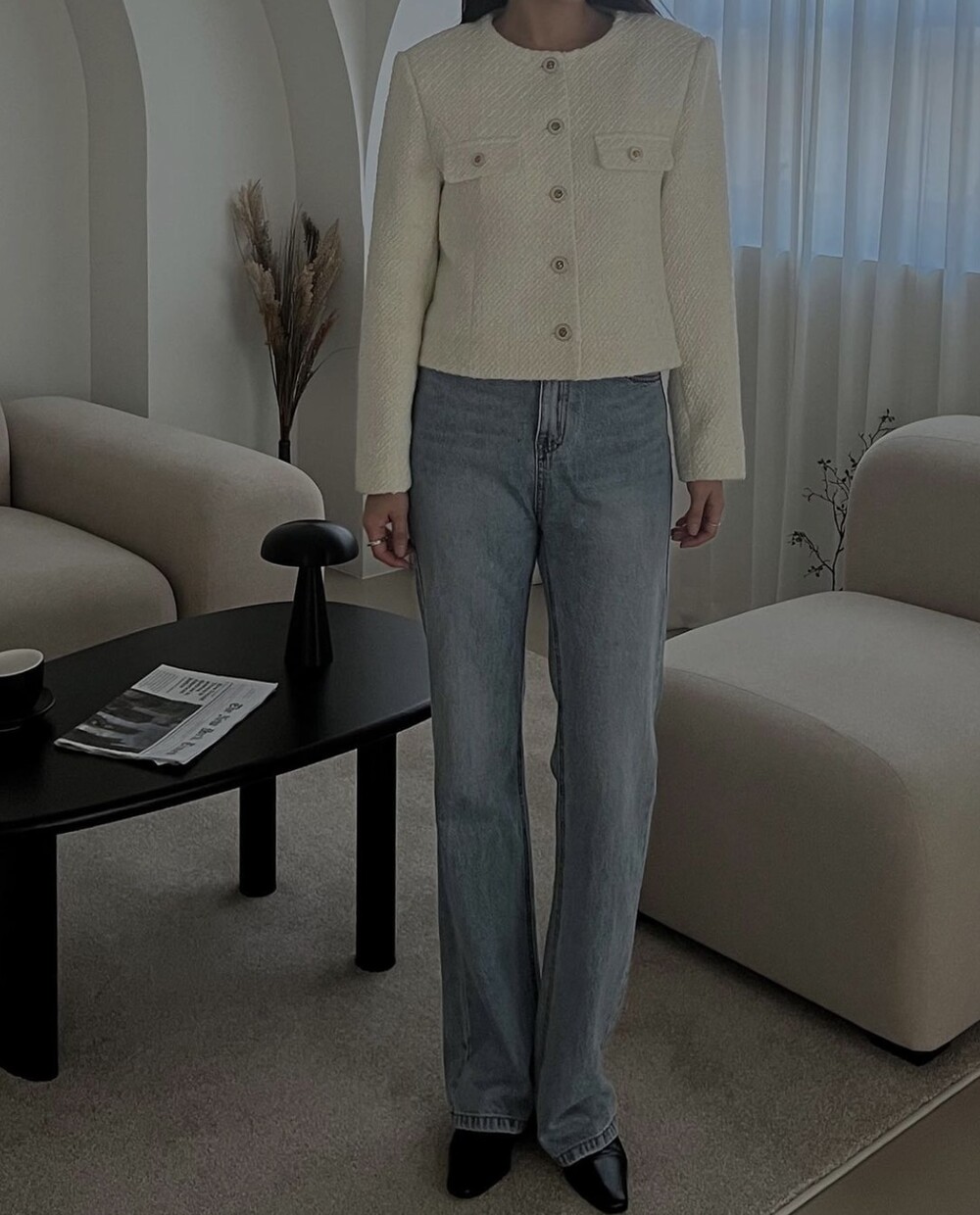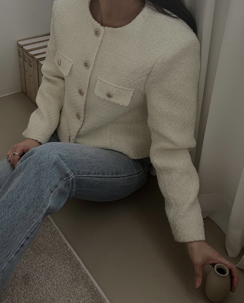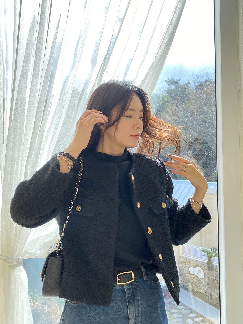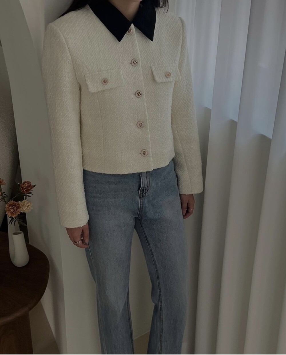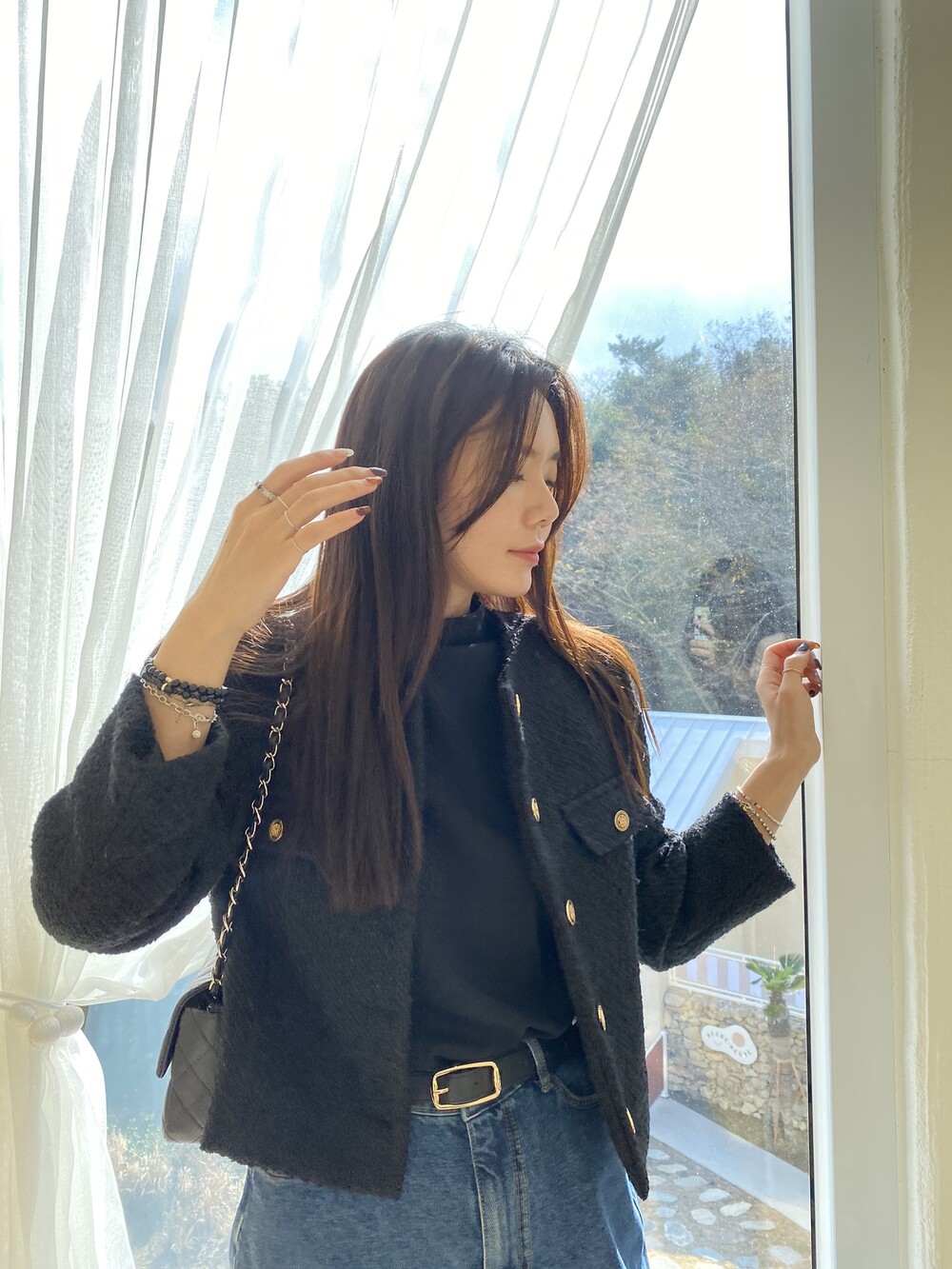 페미닌하게 즐겨 착용하기 좋은 트위드 자켓이예요