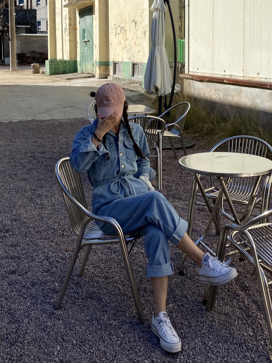 코디하셔도 되고 여유있게 입는 데님 점프수트