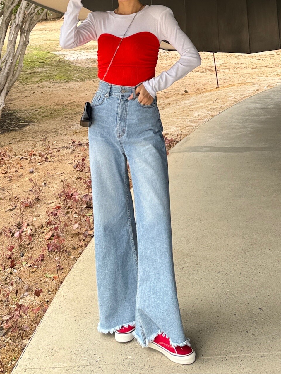 밑으로 내려갈수록 와이드하게 퍼지는 핏이예요