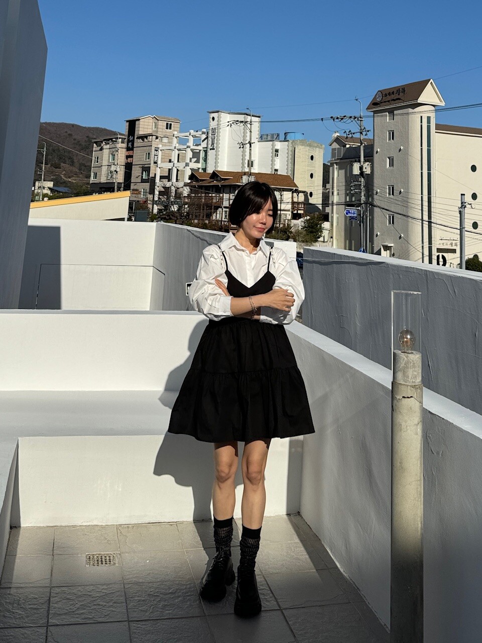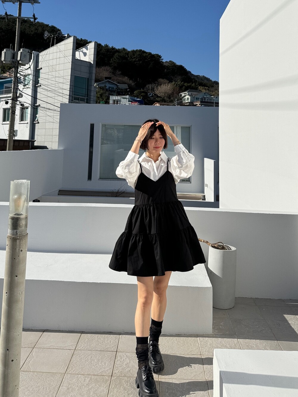 귀엽고 미니한 기장감의 뷔스티에 원피스예요