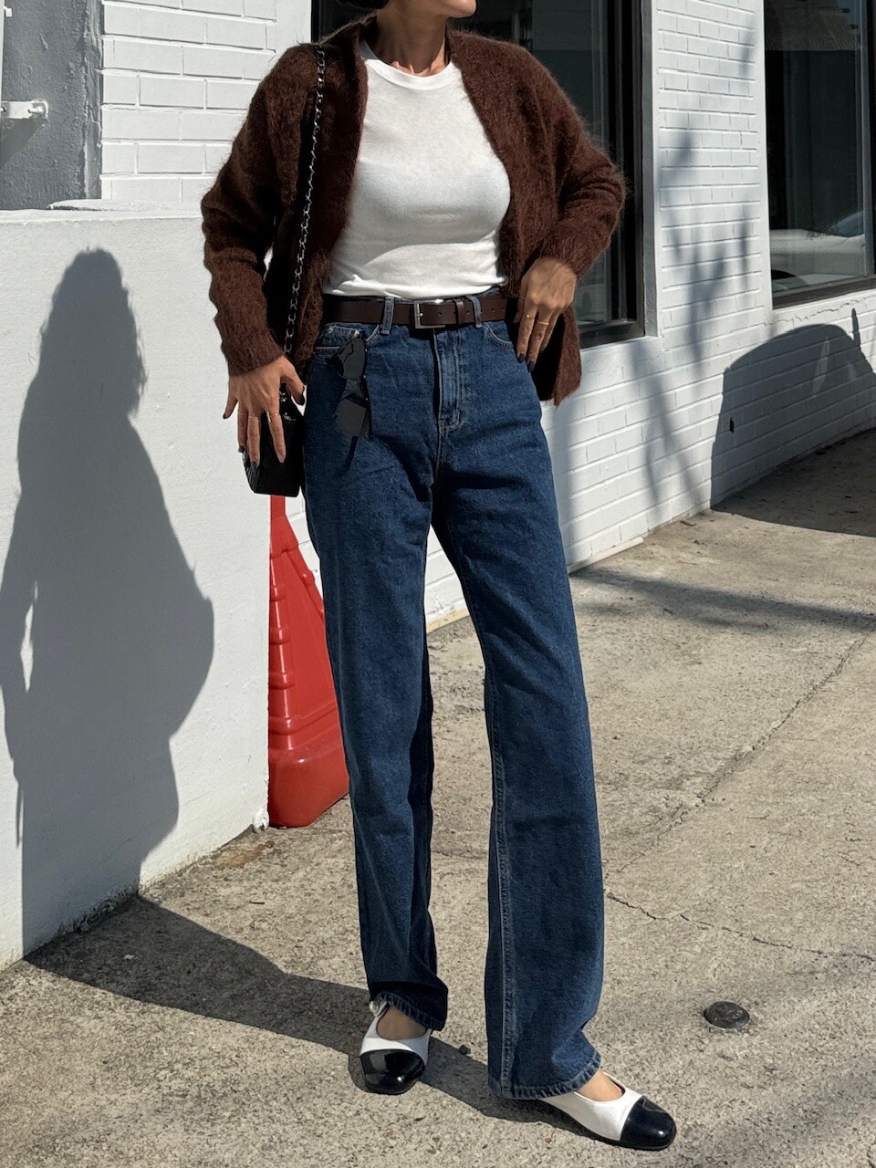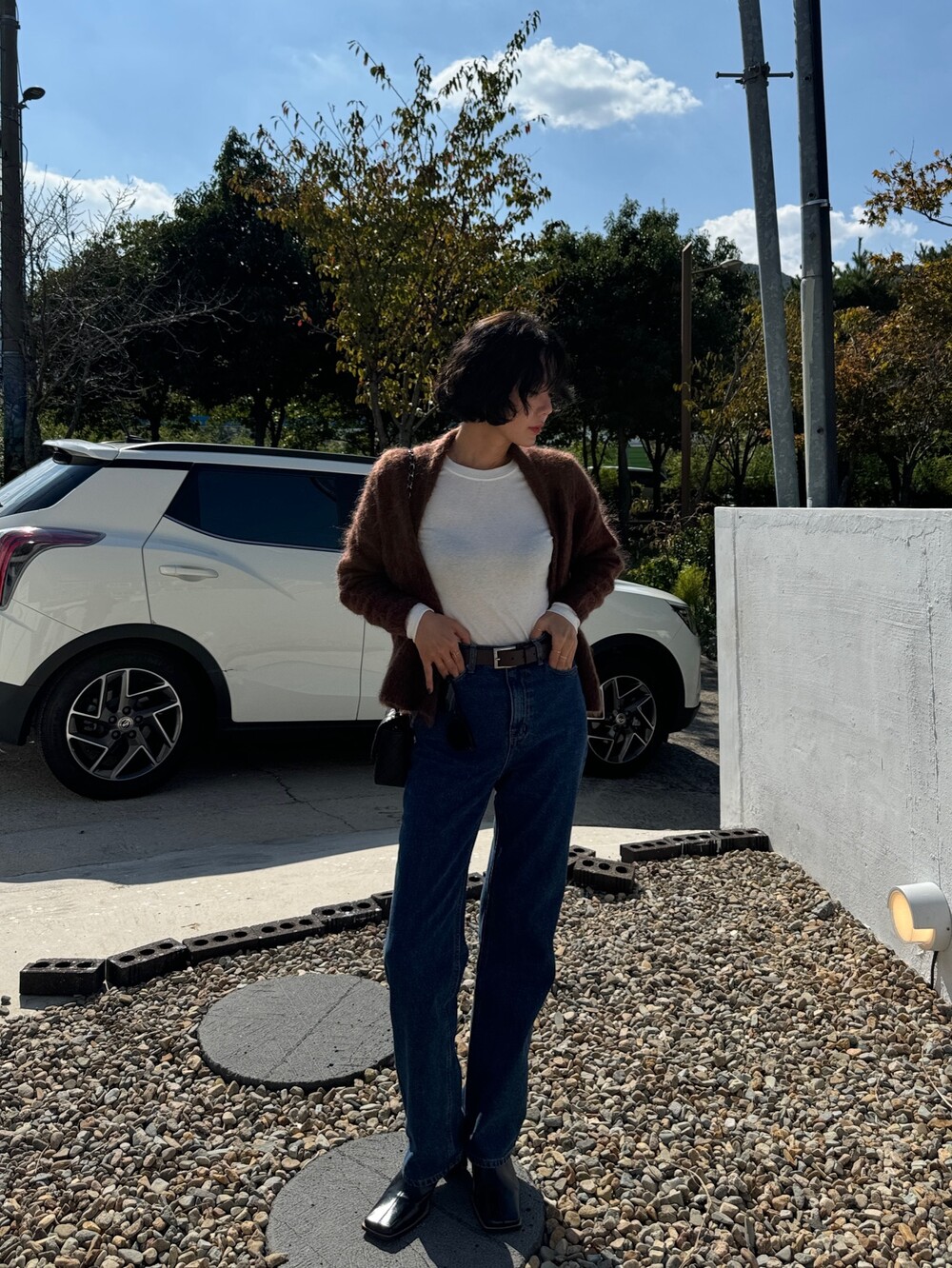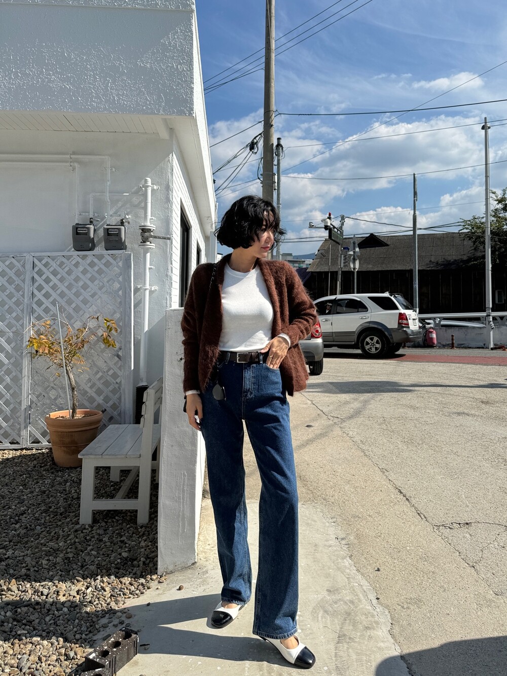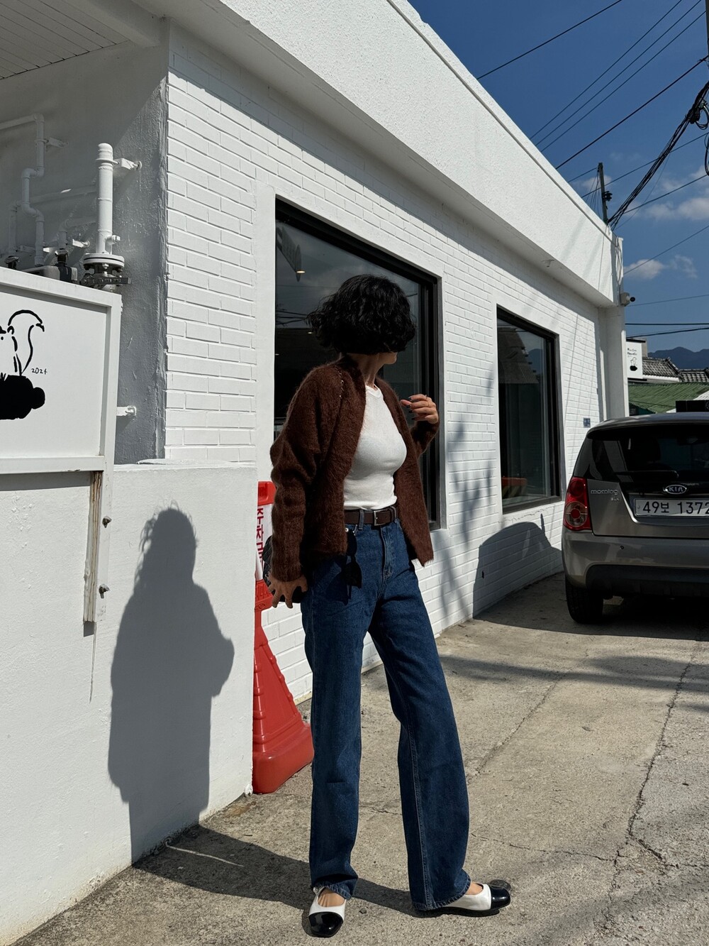 일자로 떨어져 날씬해보이는 핏을 연출해드리며
