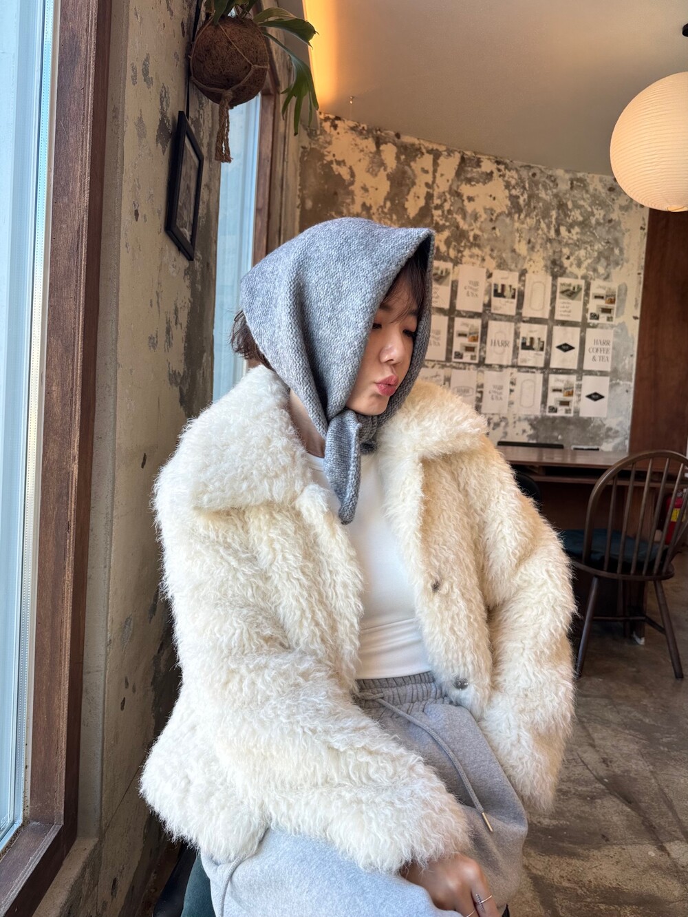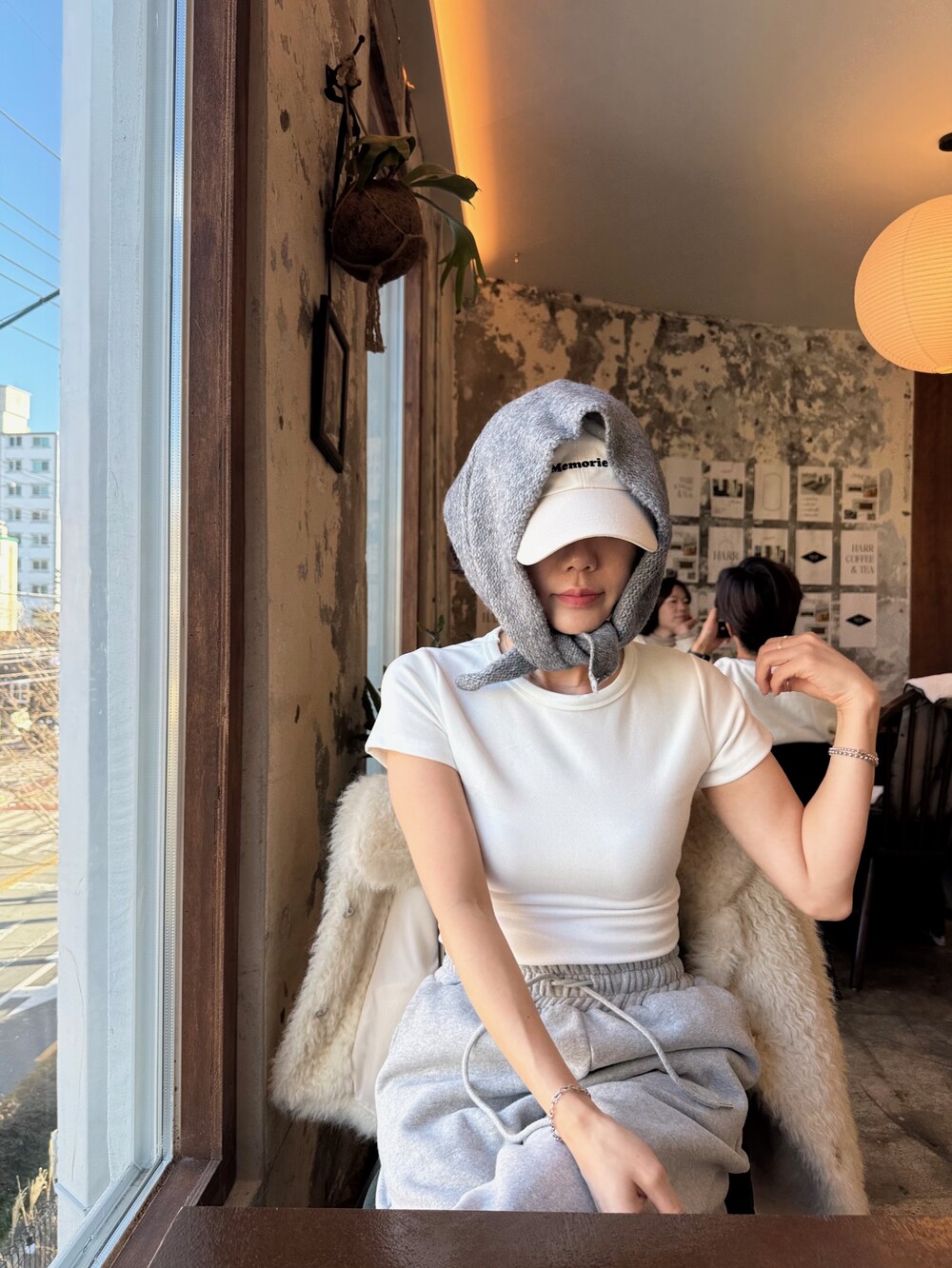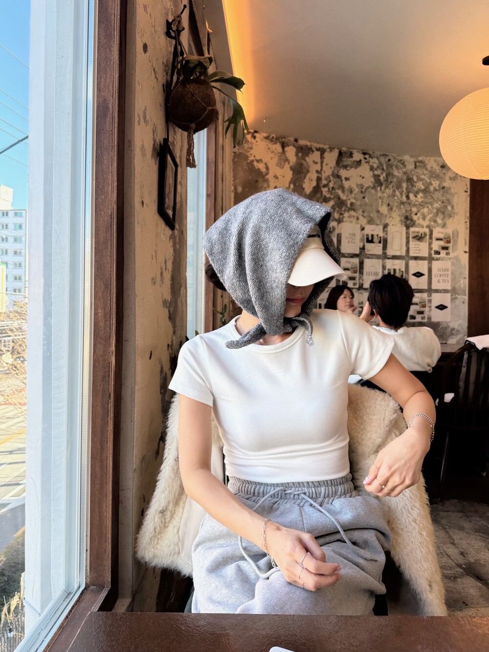 니트 헤어 보닛 스카프