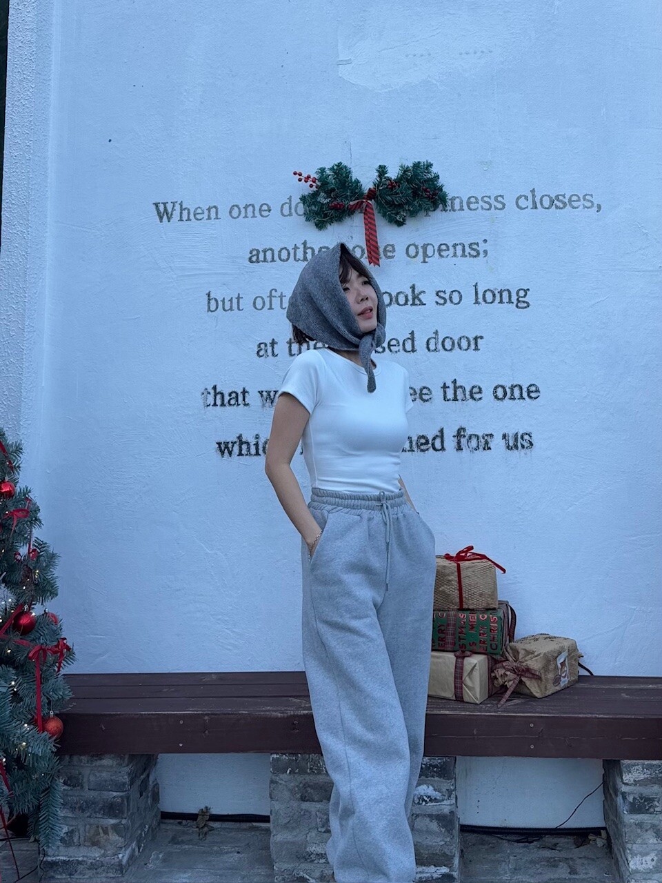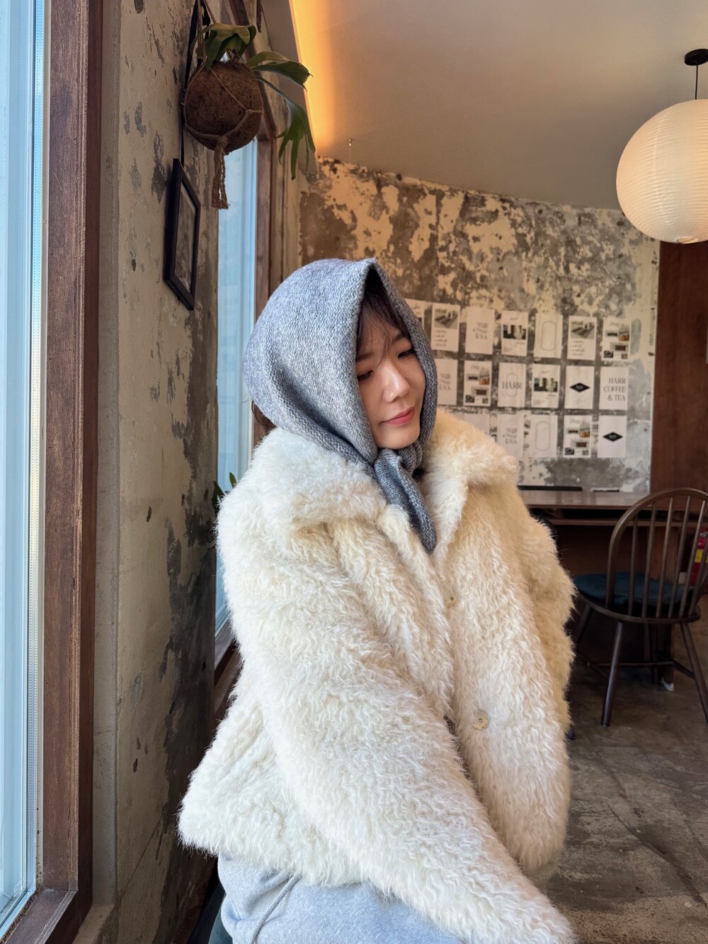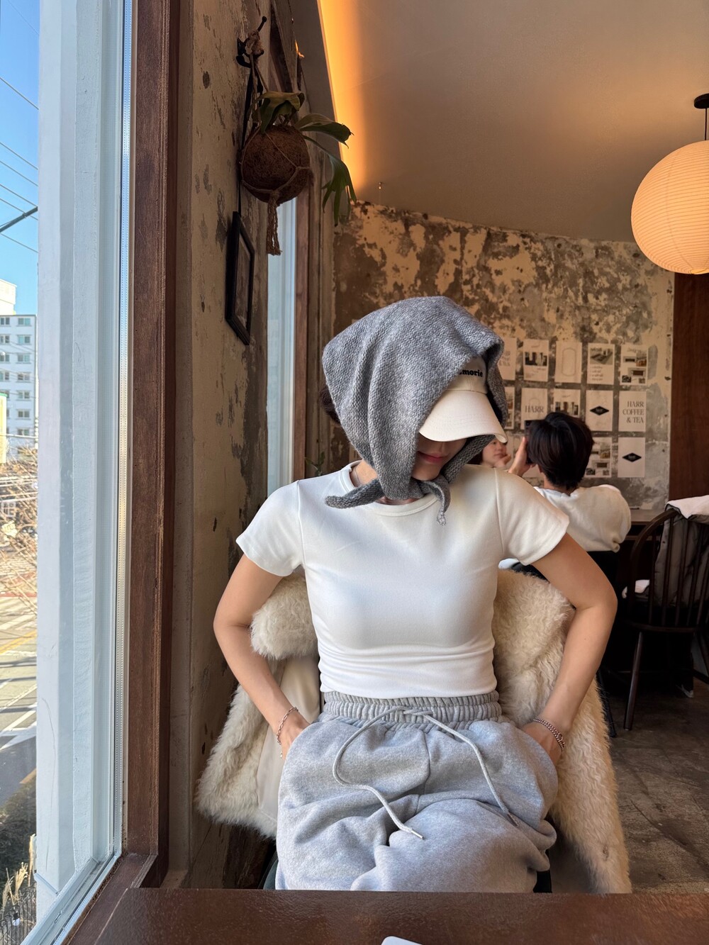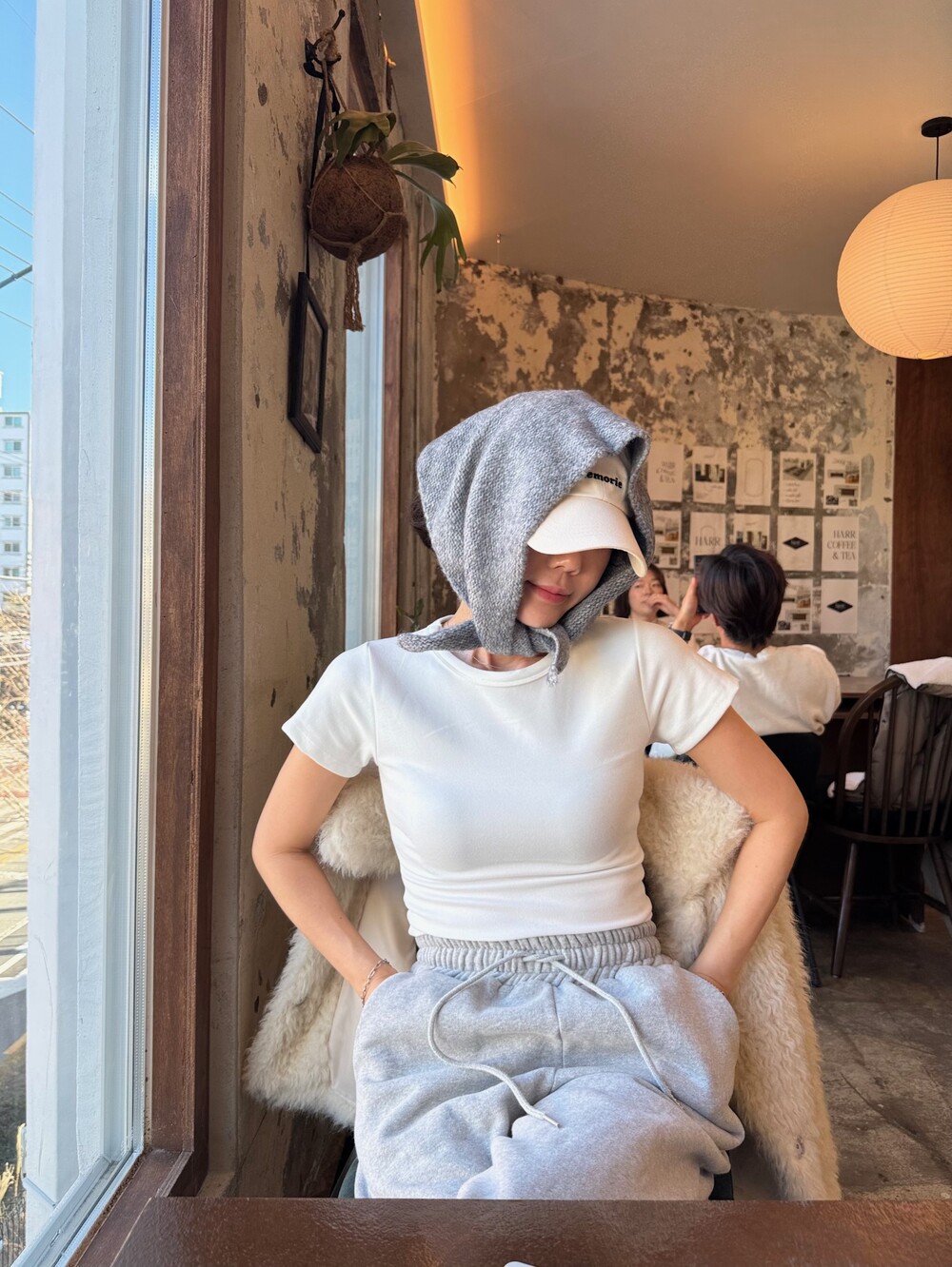 니트 헤어 보닛 스카프