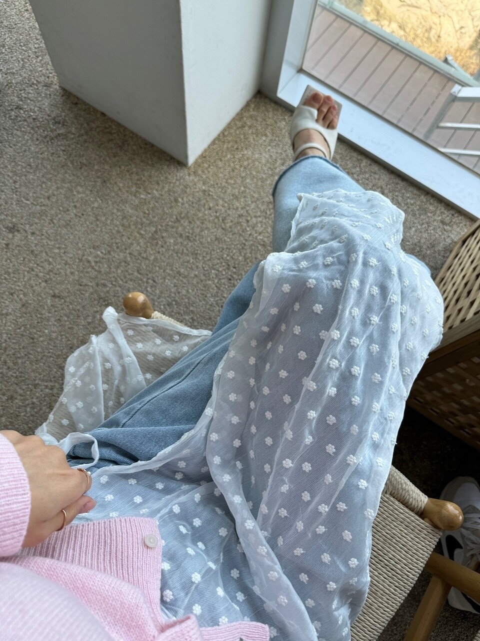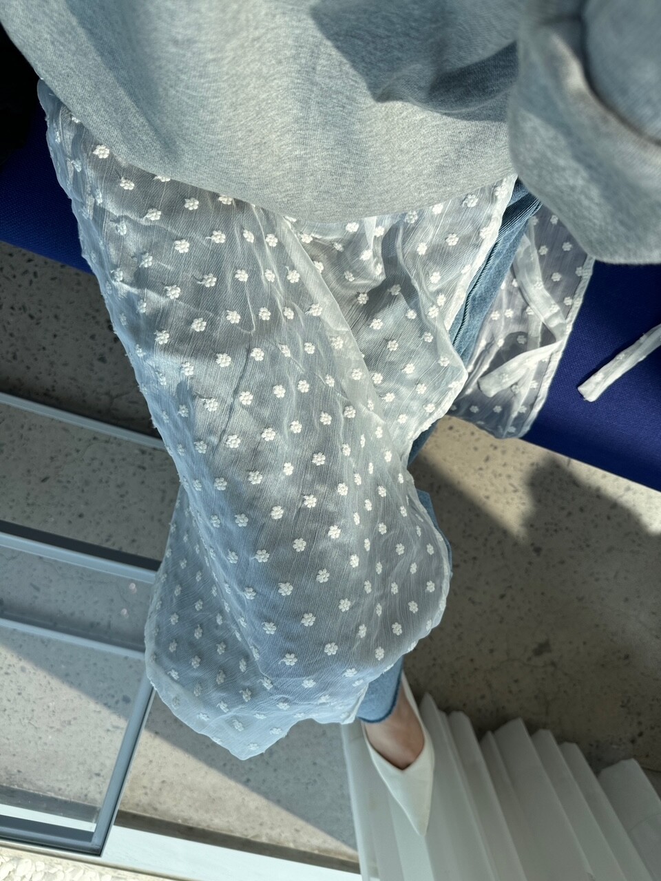 특징: 신축성 X , 비침 O, 안감 X , 두께감 얇음, 무게감 가벼움
