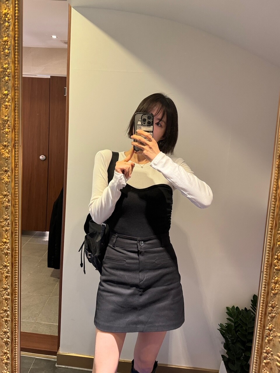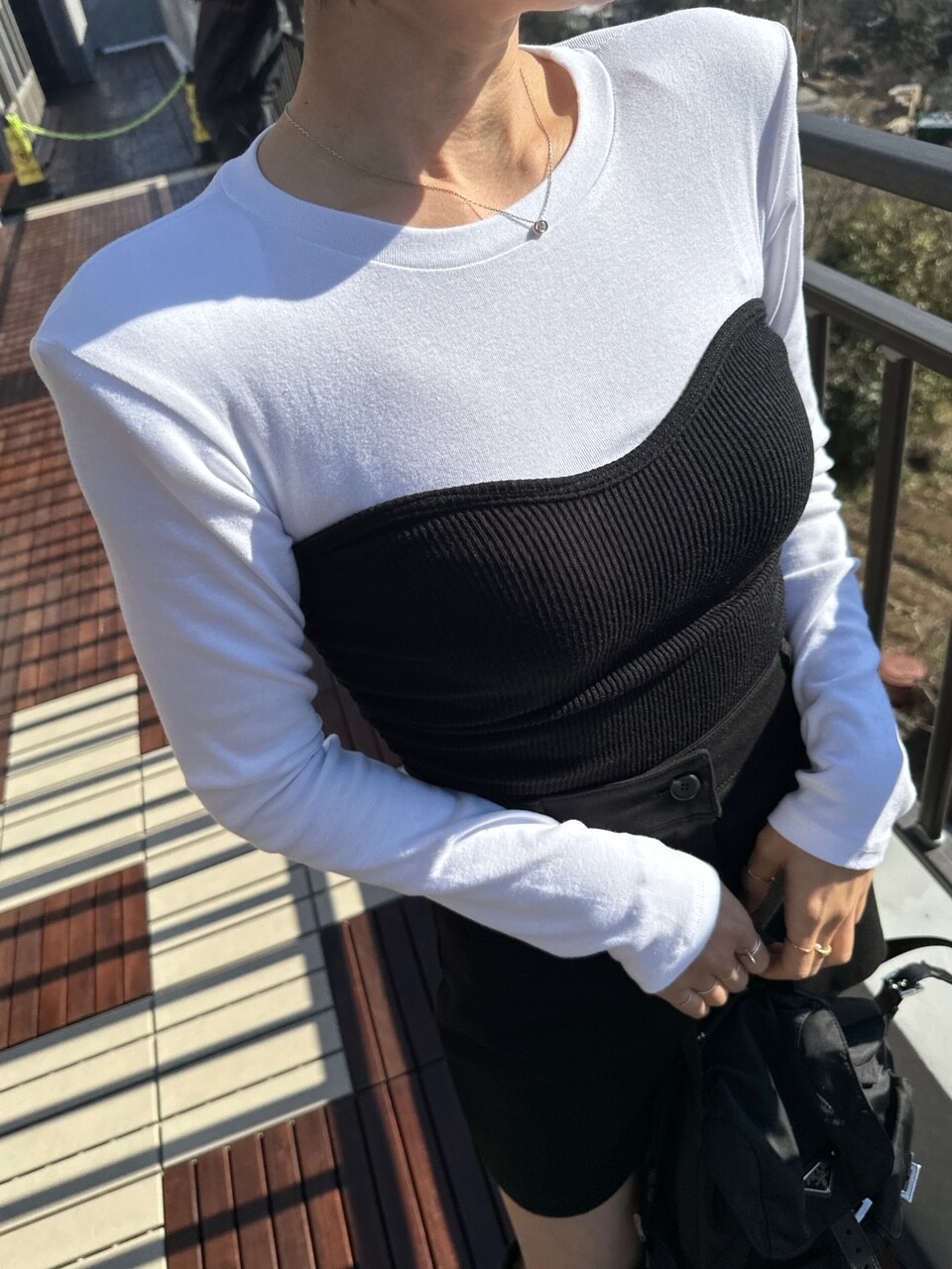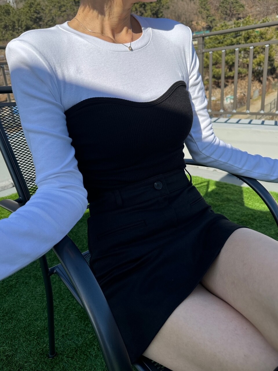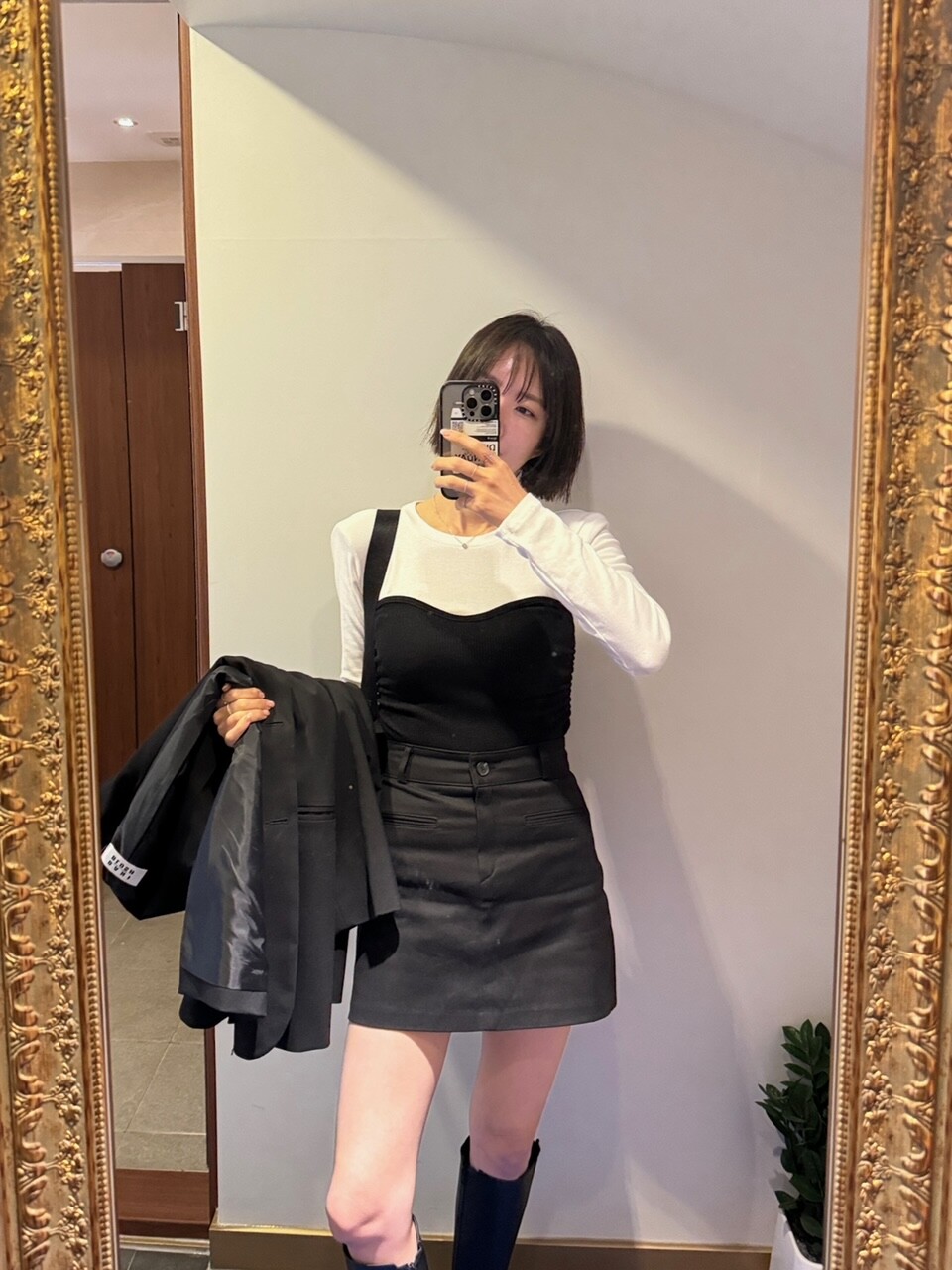 신축성 좋은 원단에 뷔스티에를 레이어드한