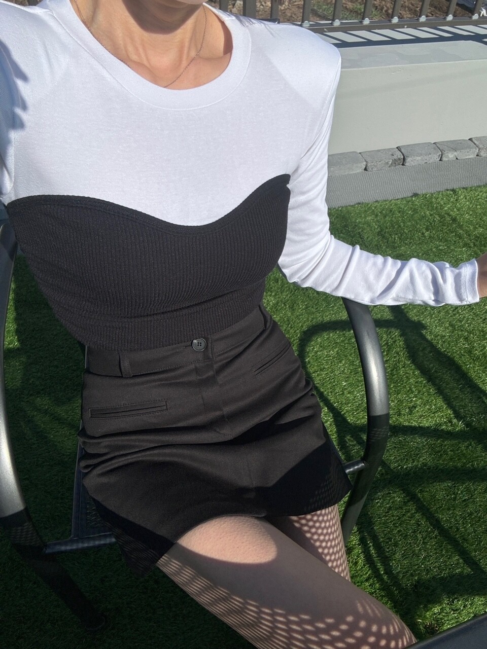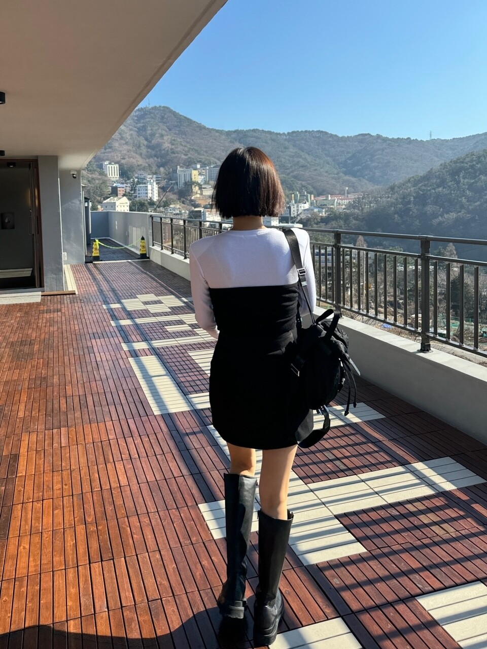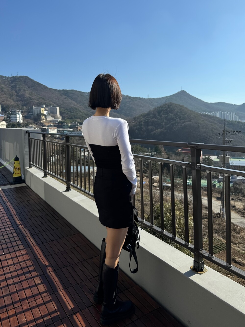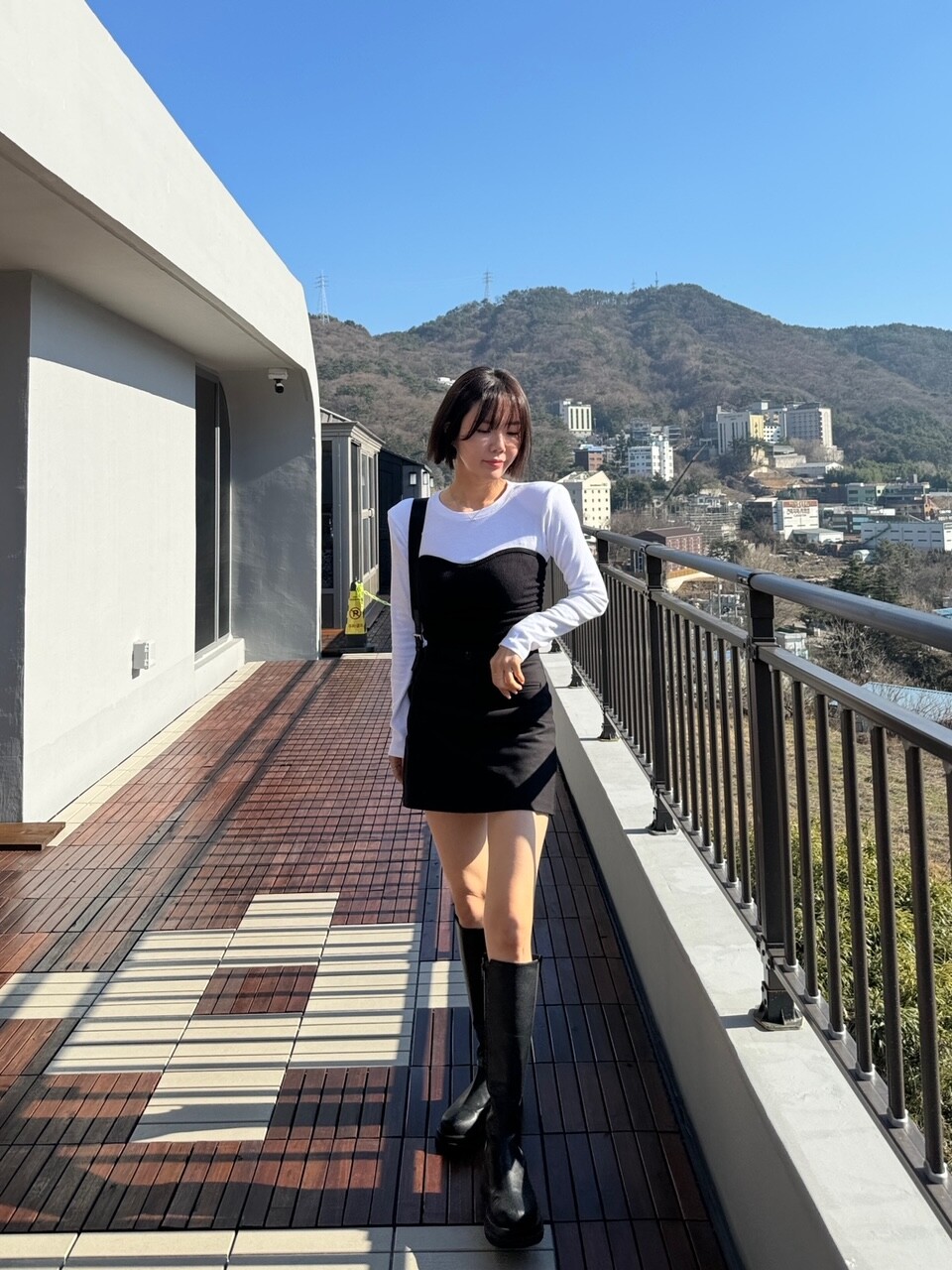 신축성 좋은 원단에 뷔스티에를 레이어드한