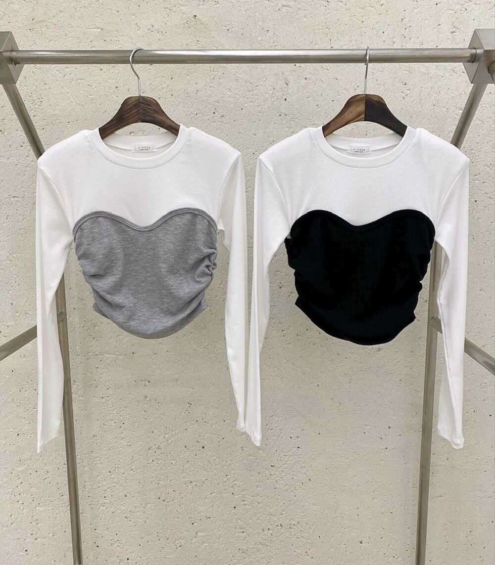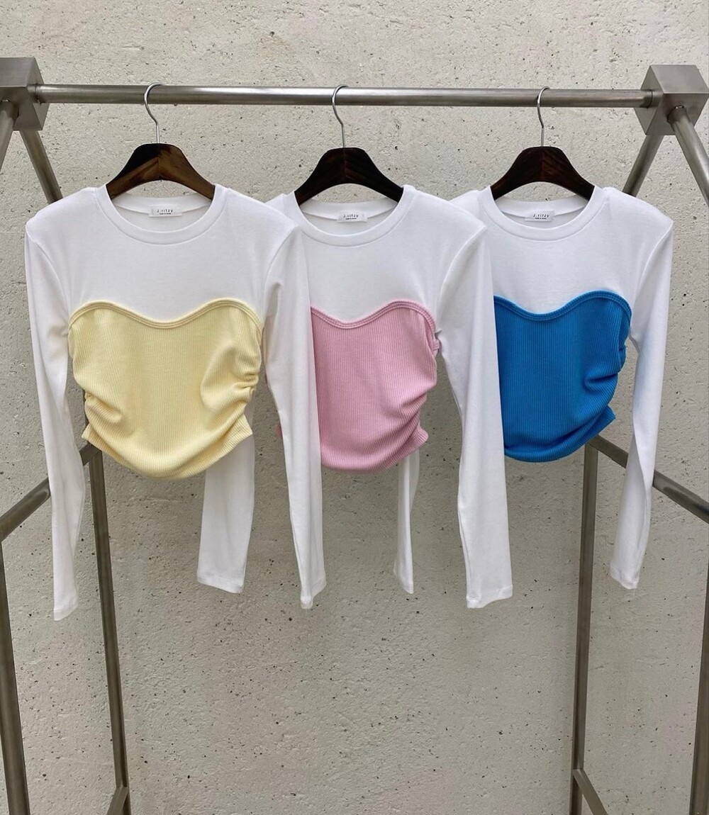 신축성 좋은 셔링 레이어드 패드 티셔츠