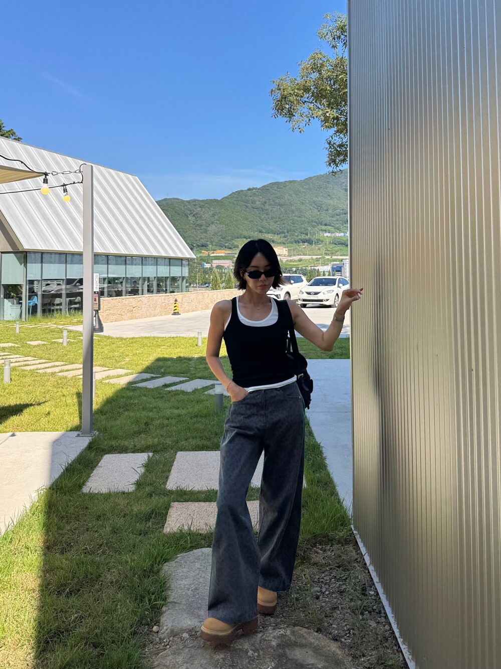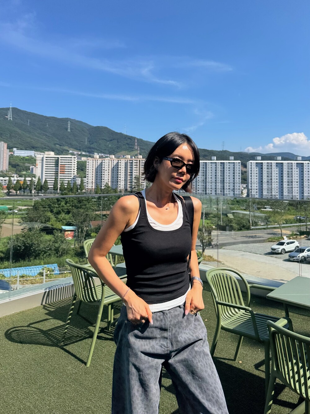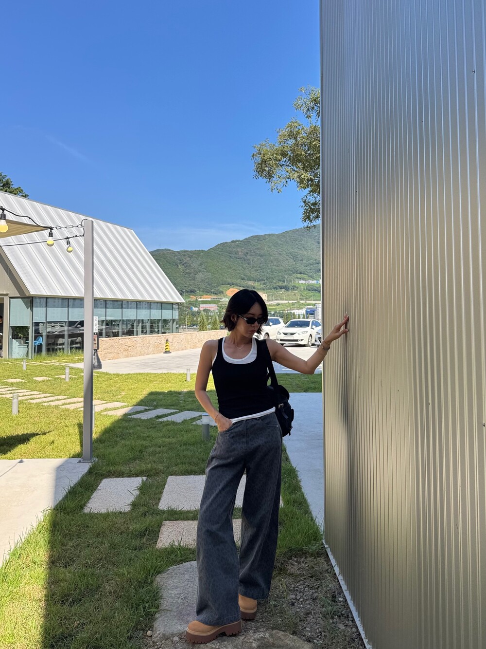 특징: 신축성 O, 비침 X, 안감 X, 두께감 보통, 무게감 보통