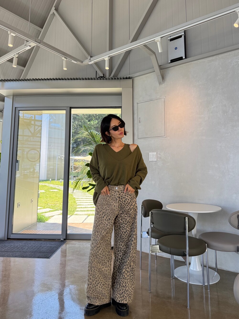 멋스럽게 연출되는 레오파드 팬츠예요