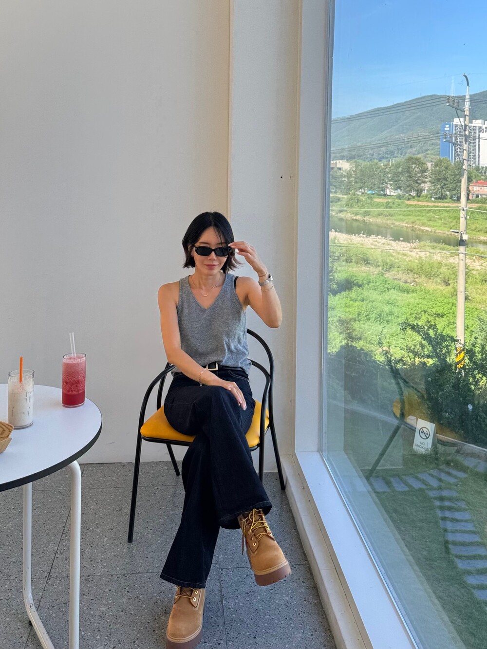 특징: 신축성 O, 비침 X, 안감 X, 두께감 보통, 무게감 보통