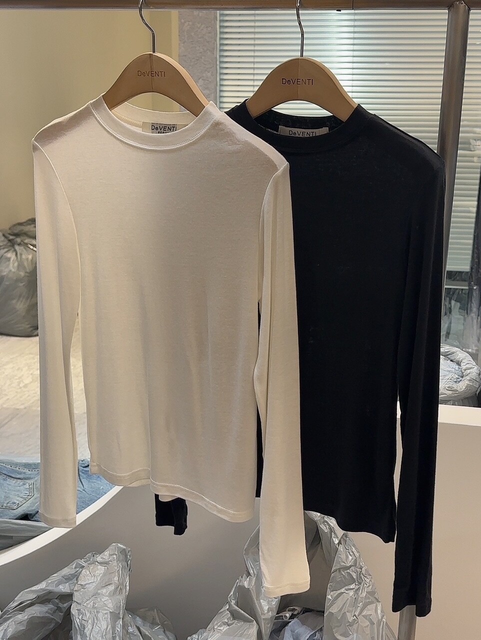 특징: 신축성 O, 비침 밝은컬러 약간, 안감 X, 두께감 보통, 무게감 보통