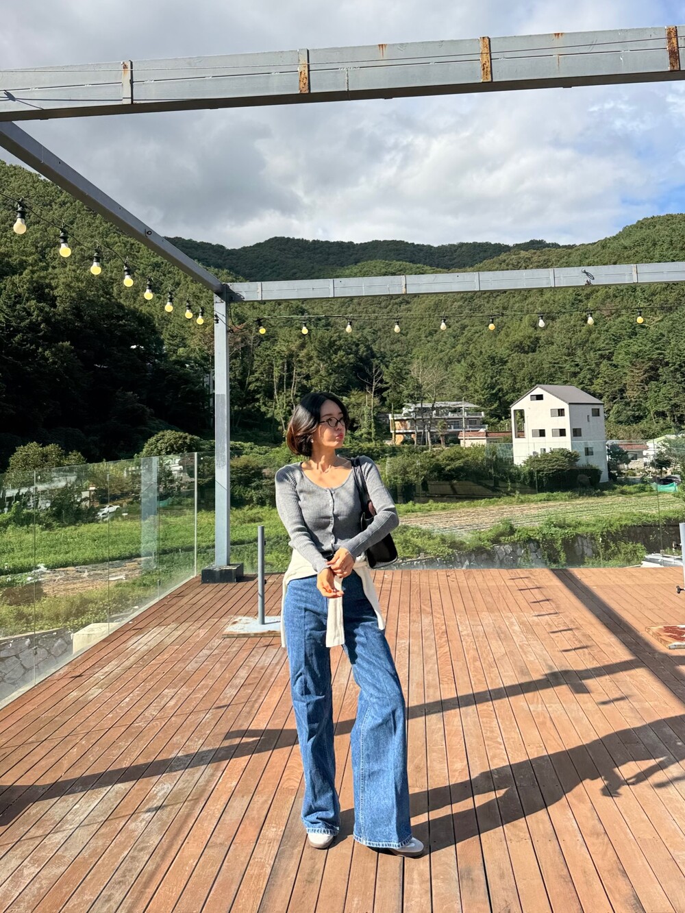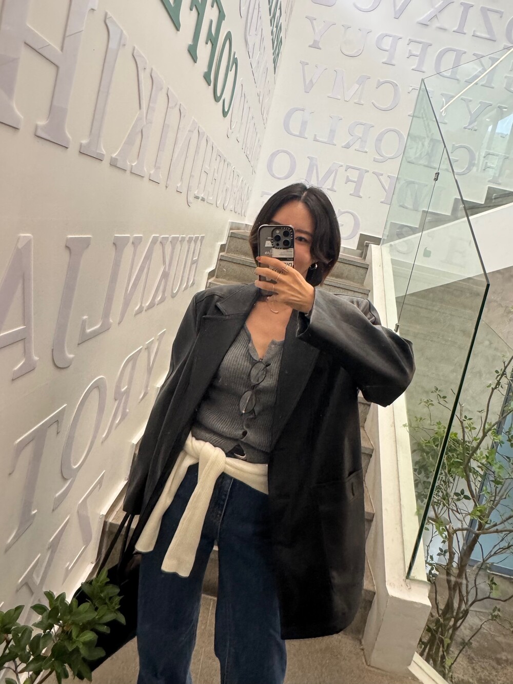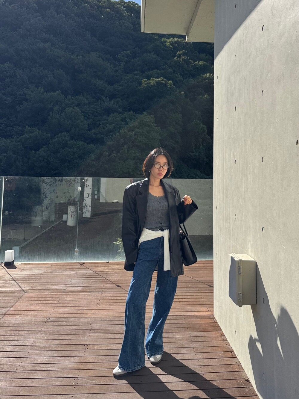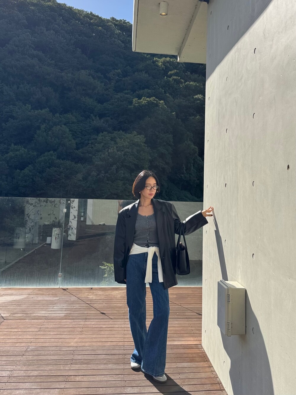 특징: 신축성 O, 비침 X, 안감 X, 두께감 보통, 무게감 보통