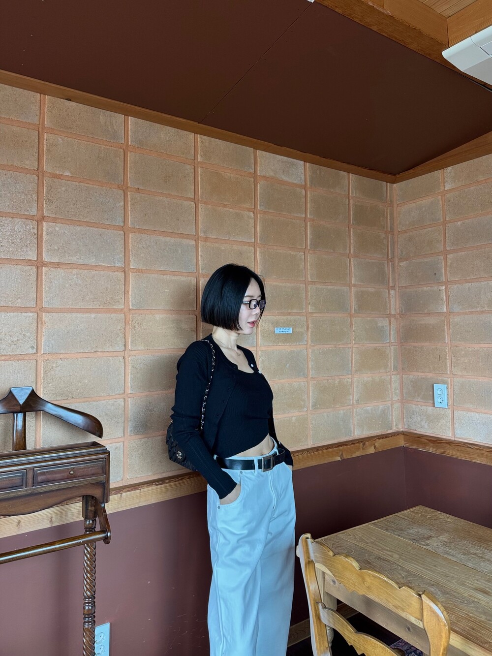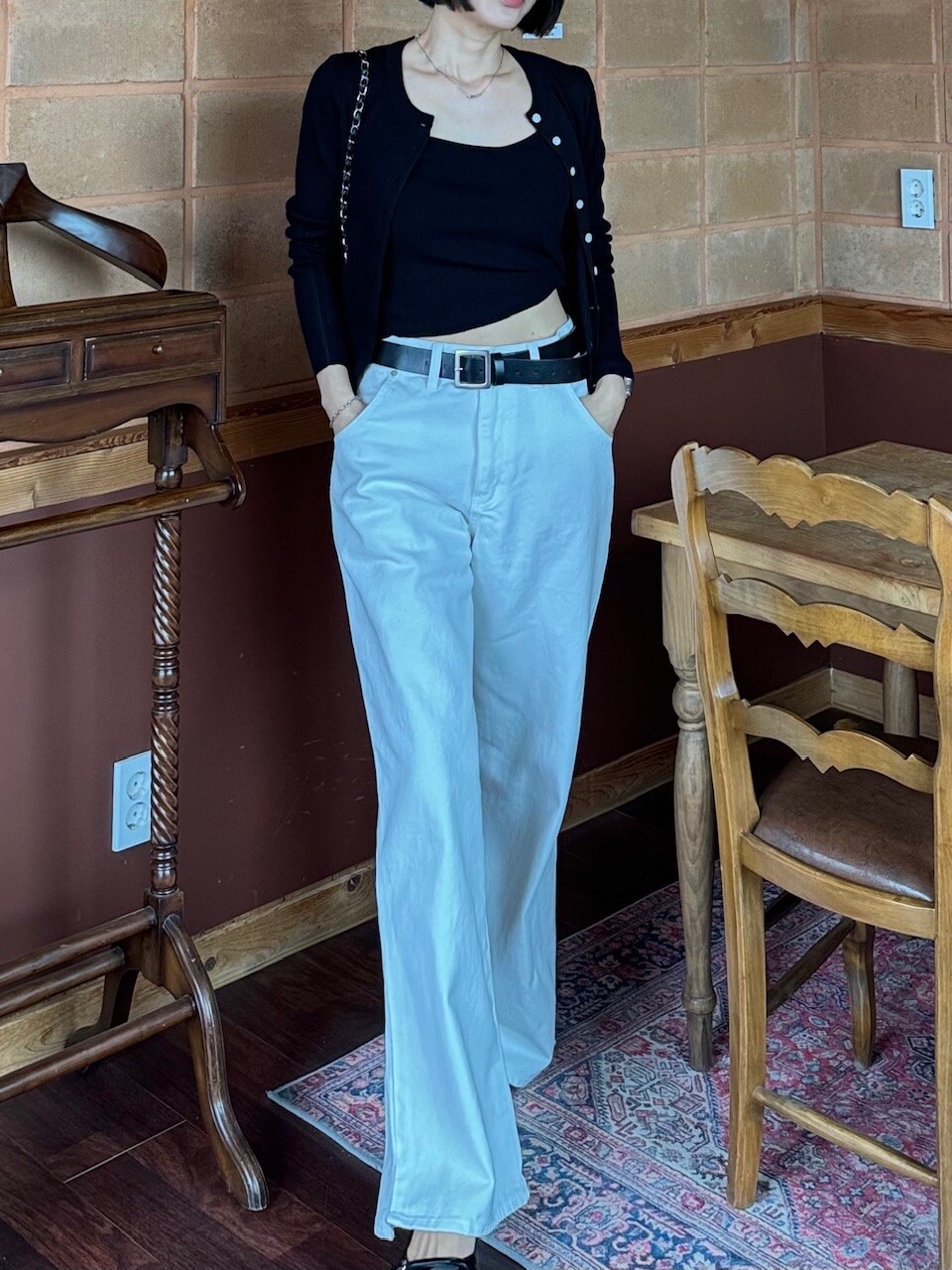 특징: 신축성 O, 비침 X, 안감 X, 두께감 보통, 무게감 보통