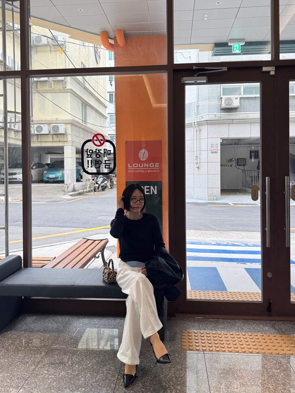 특징: 신축성 O, 비침 X, 안감 X, 두께감 보통, 무게감 보통