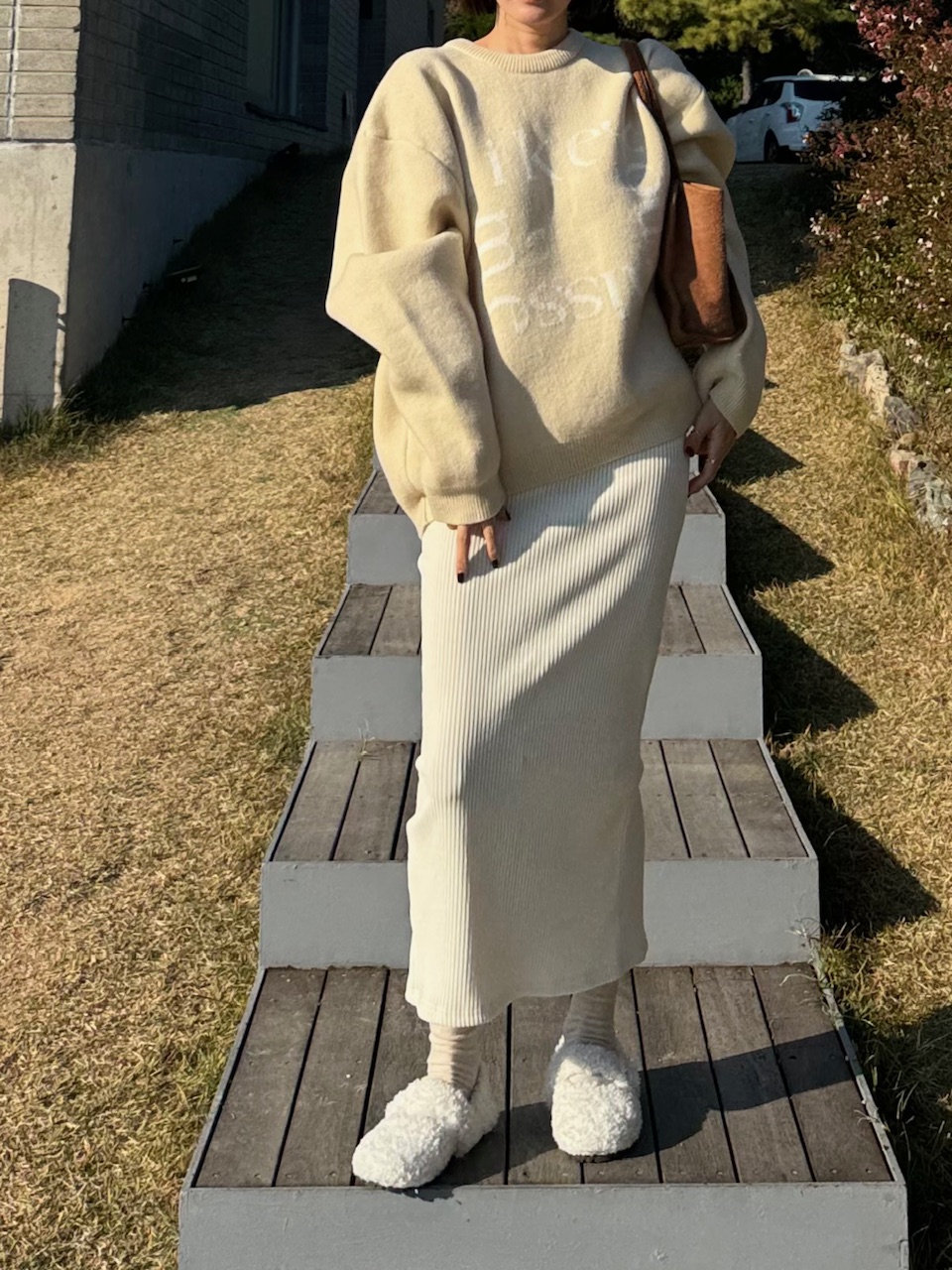 과하지 않은 기장감의 뒷트임 롱스커트예요