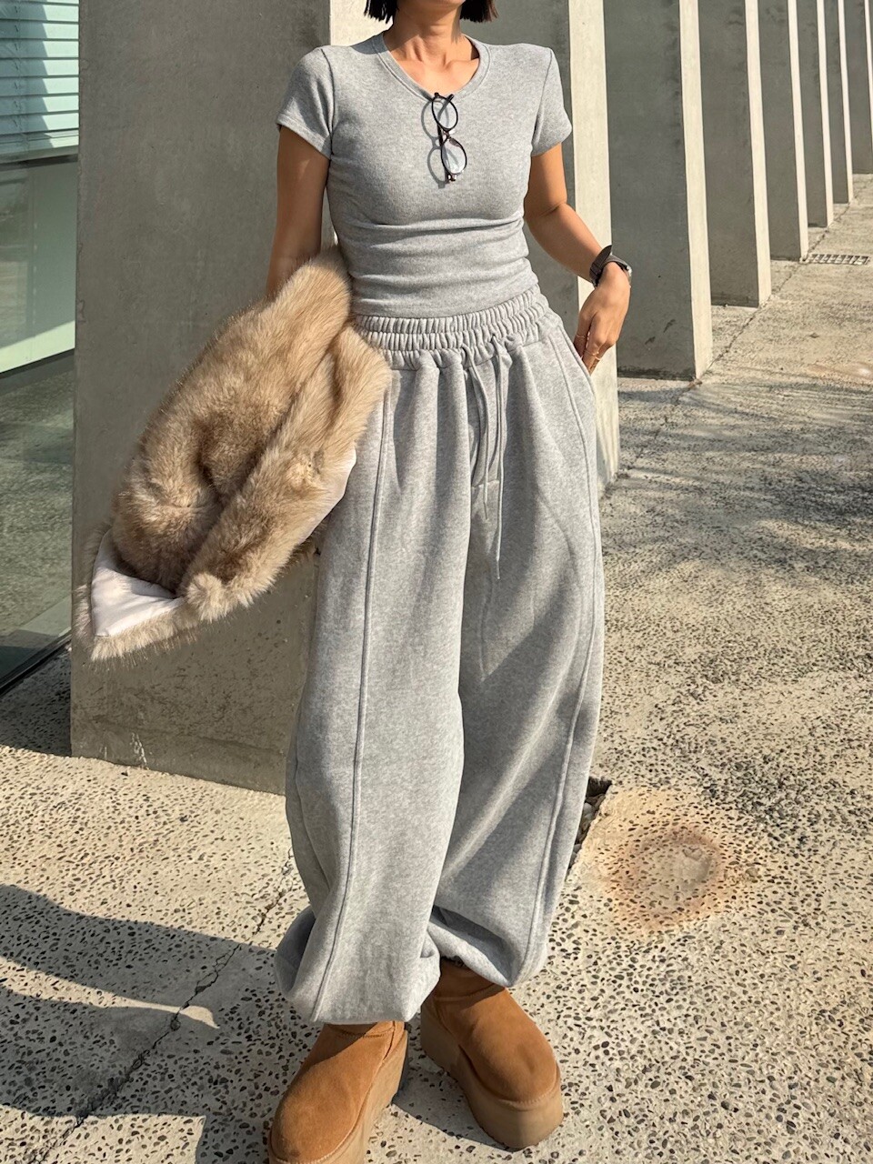 특징: 신축성 O, 비침 X, 안감 O, 두께감 두꺼움, 무게감 보통