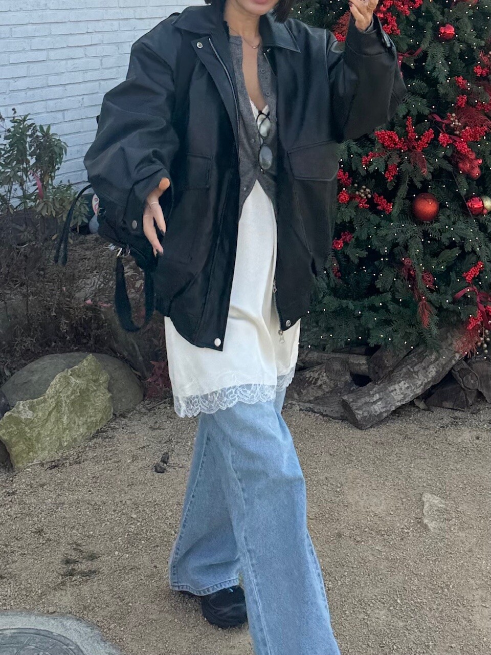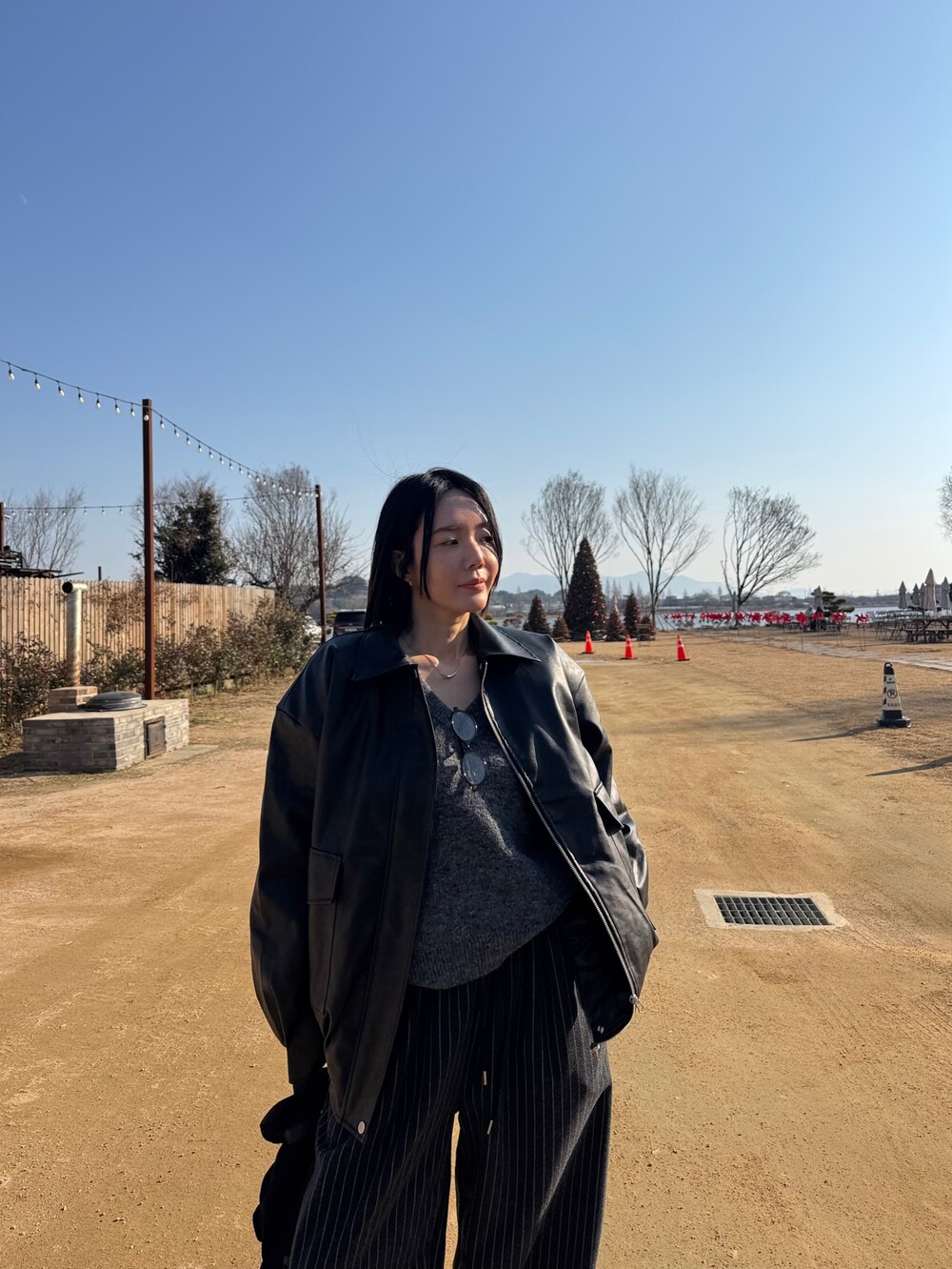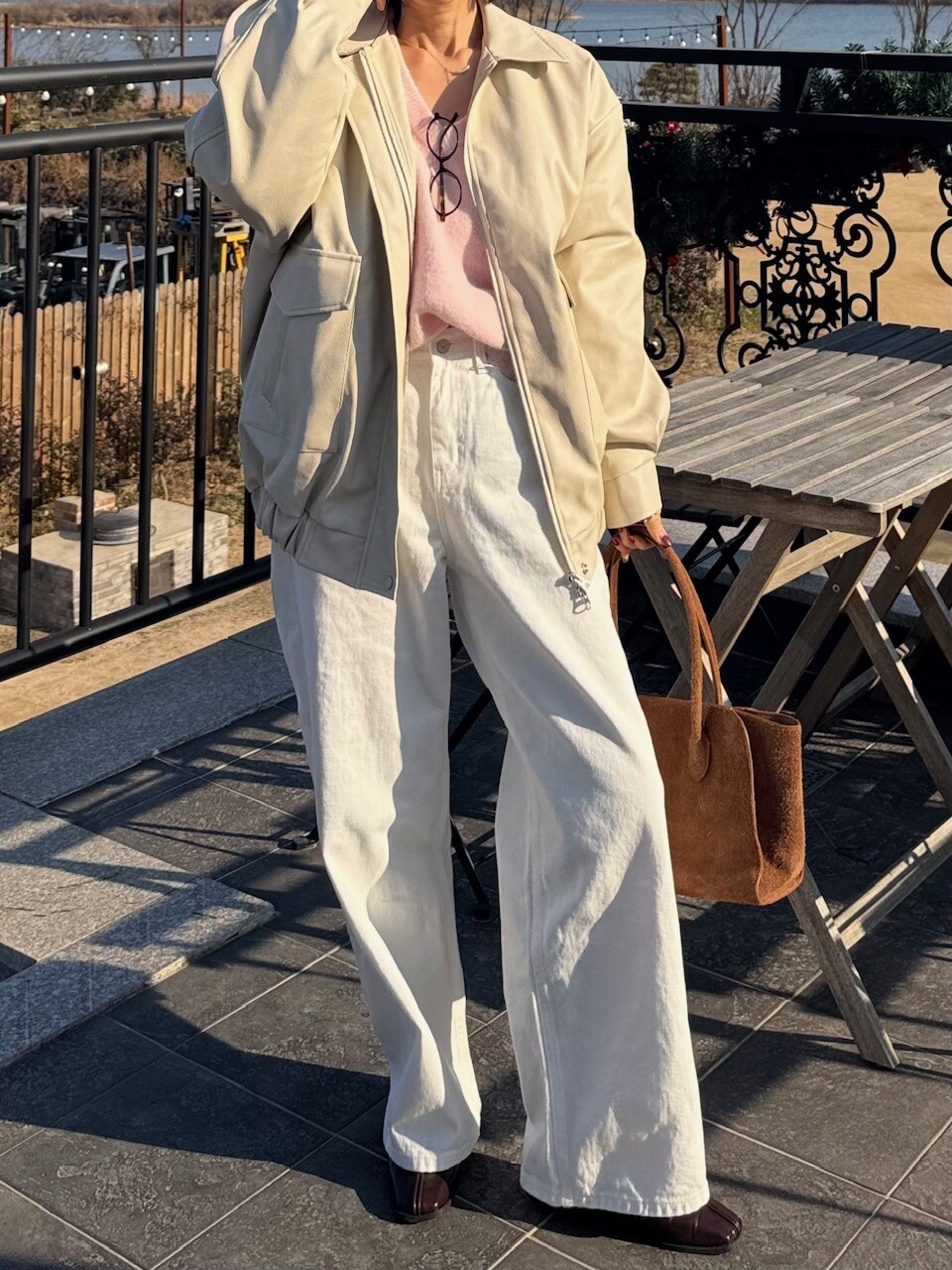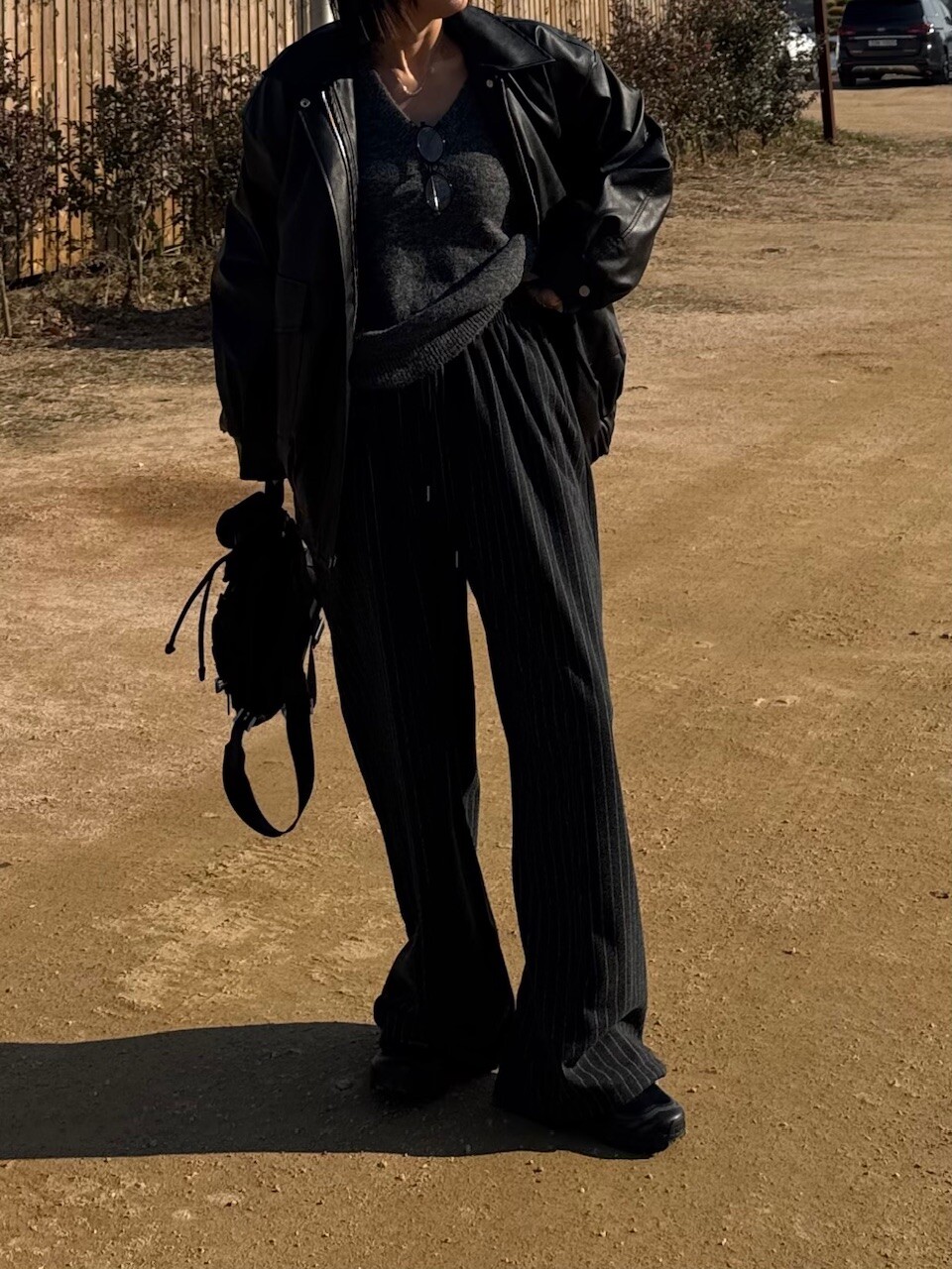 특징: 신축성 O, 비침 X, 안감 (퍼안감), 두께감 보통, 무게감 보통