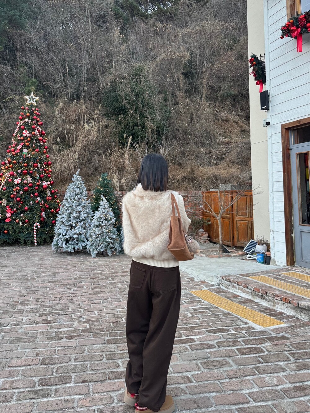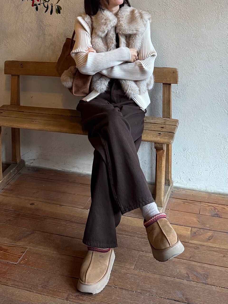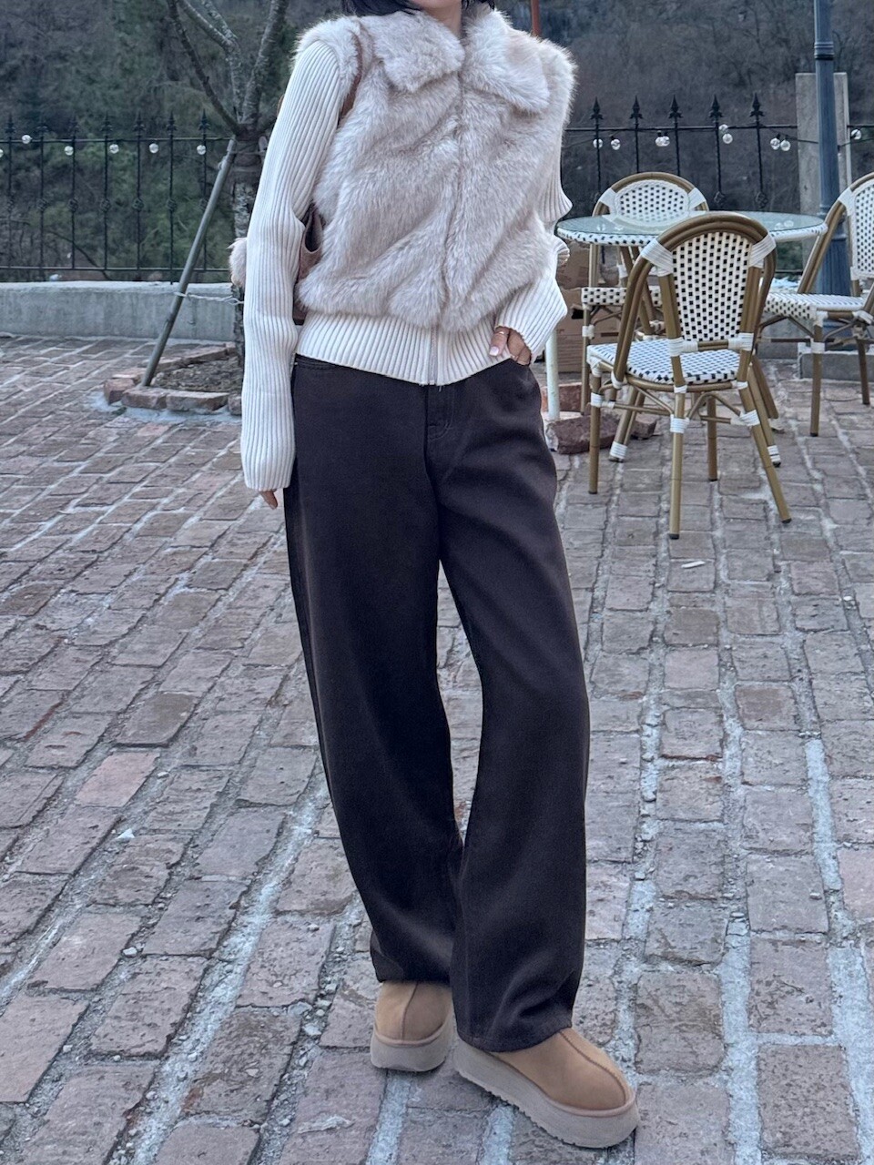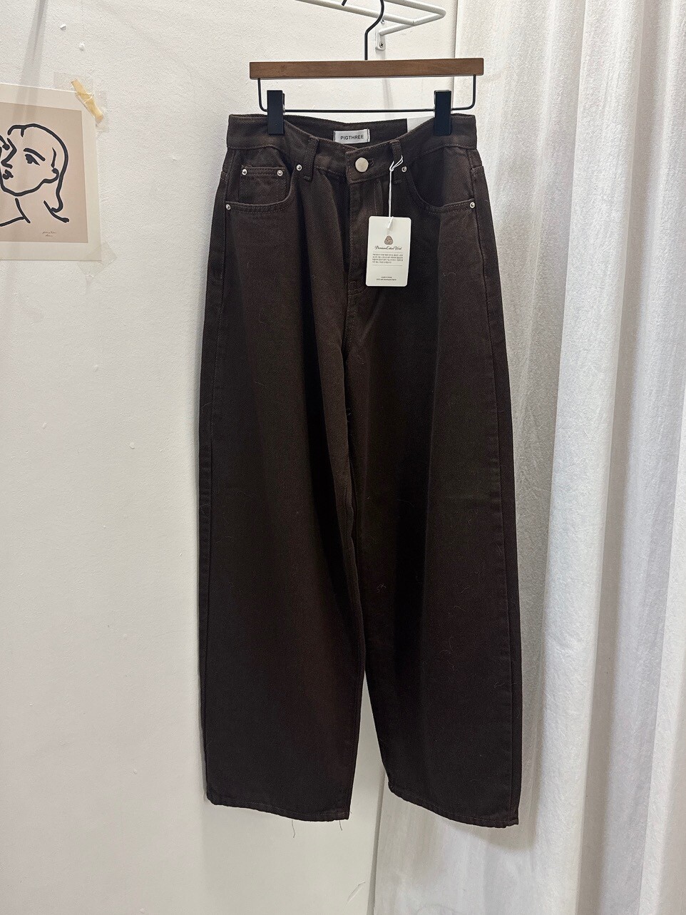 브라운 다잉 와이드 팬츠
