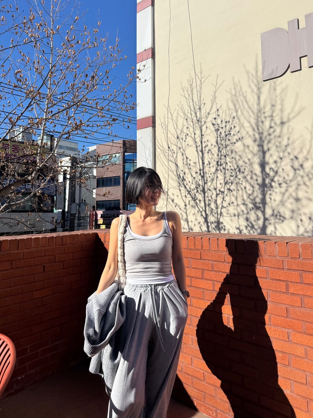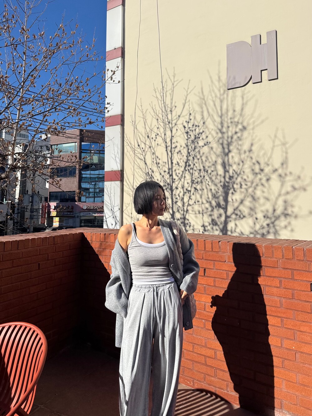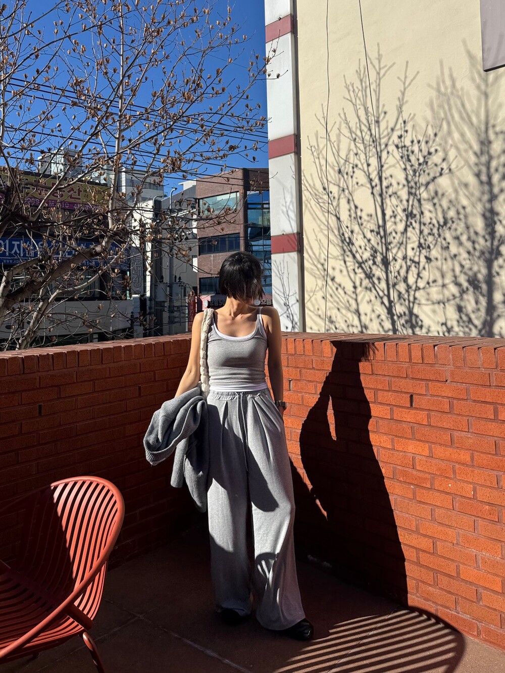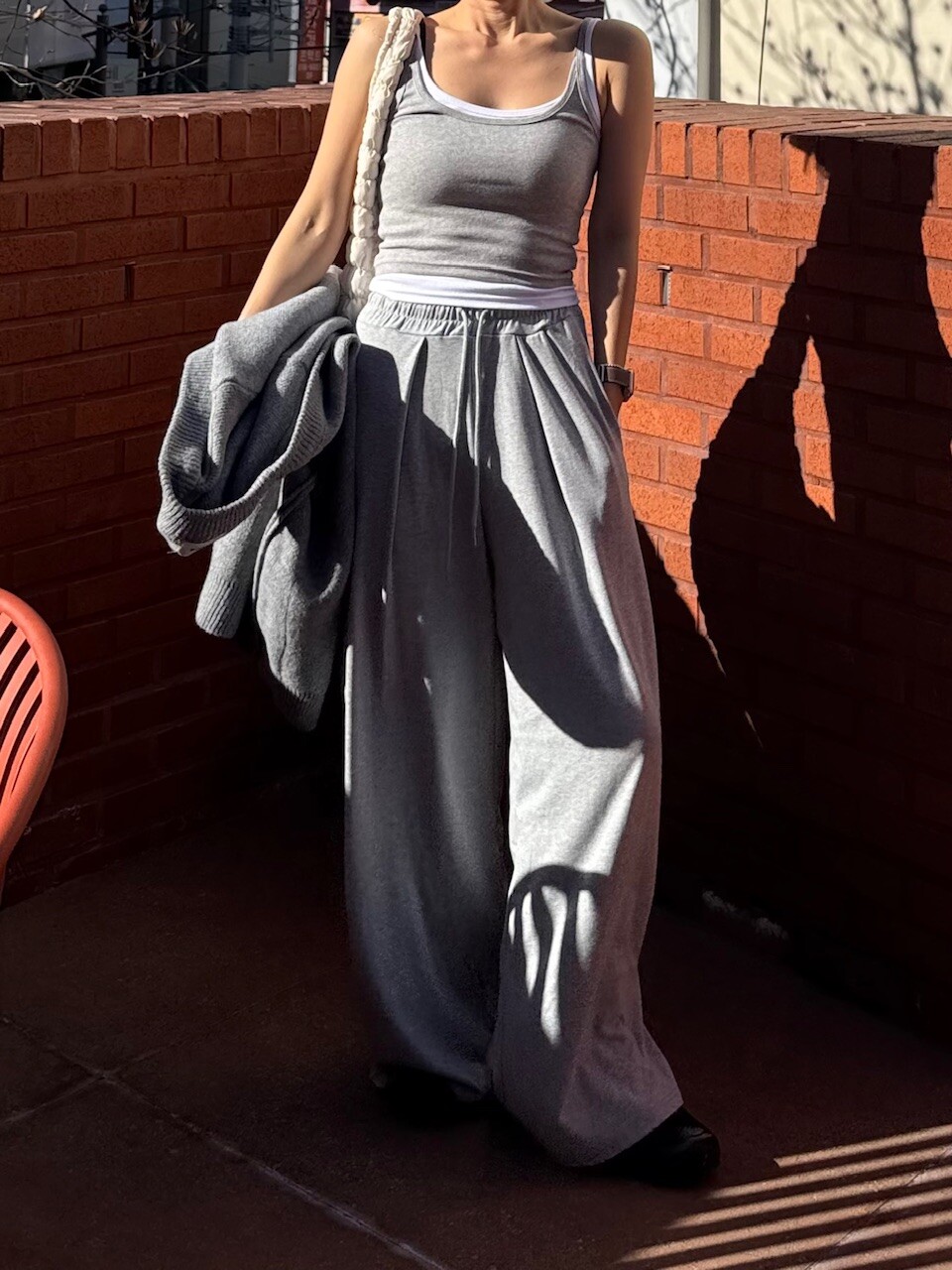 특징: 신축성 O, 비침 X, 안감 X, 두께감 보통, 무게감 보통