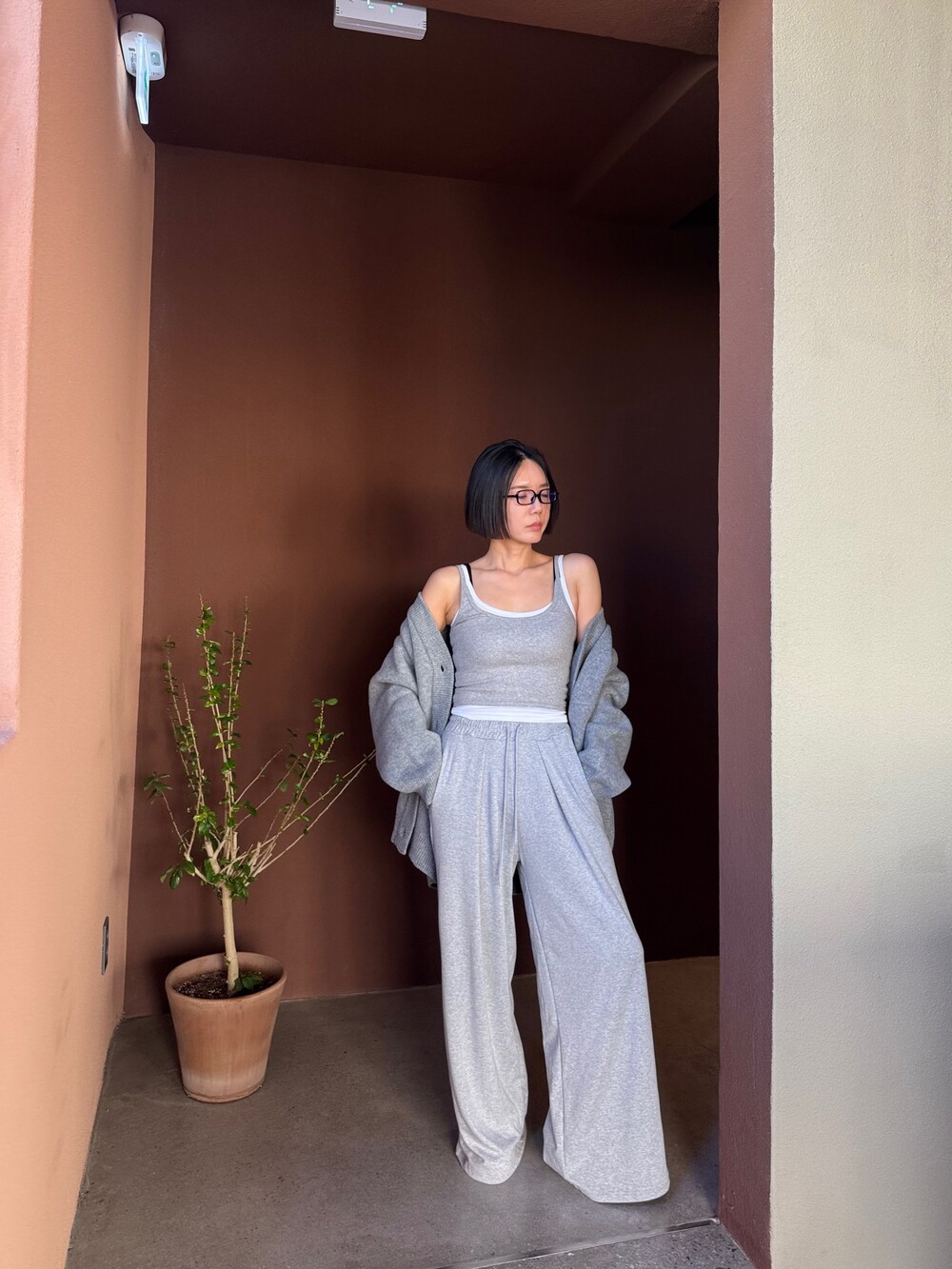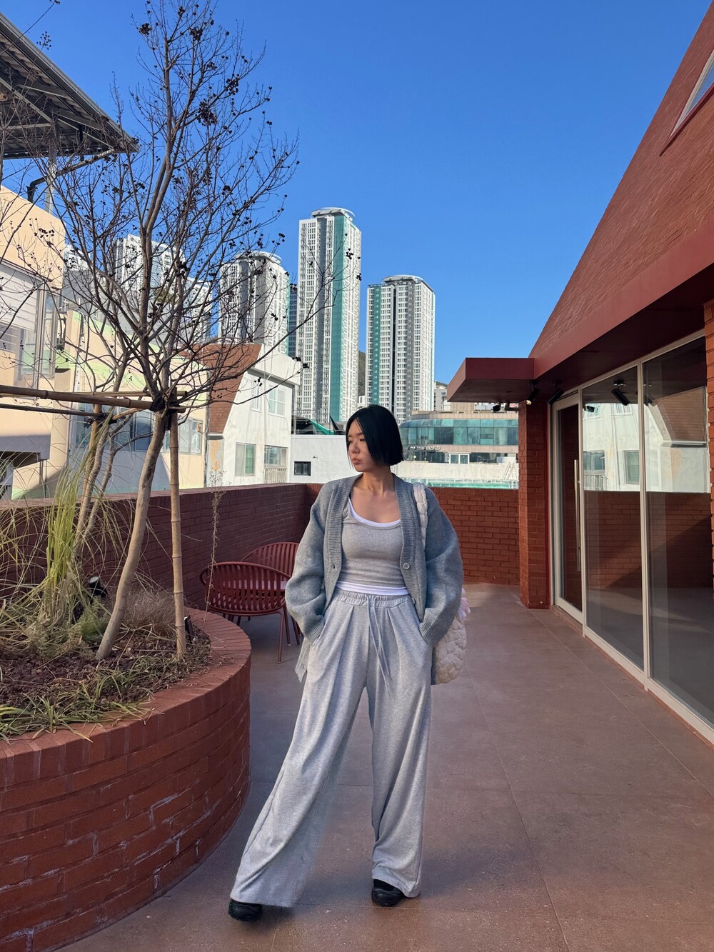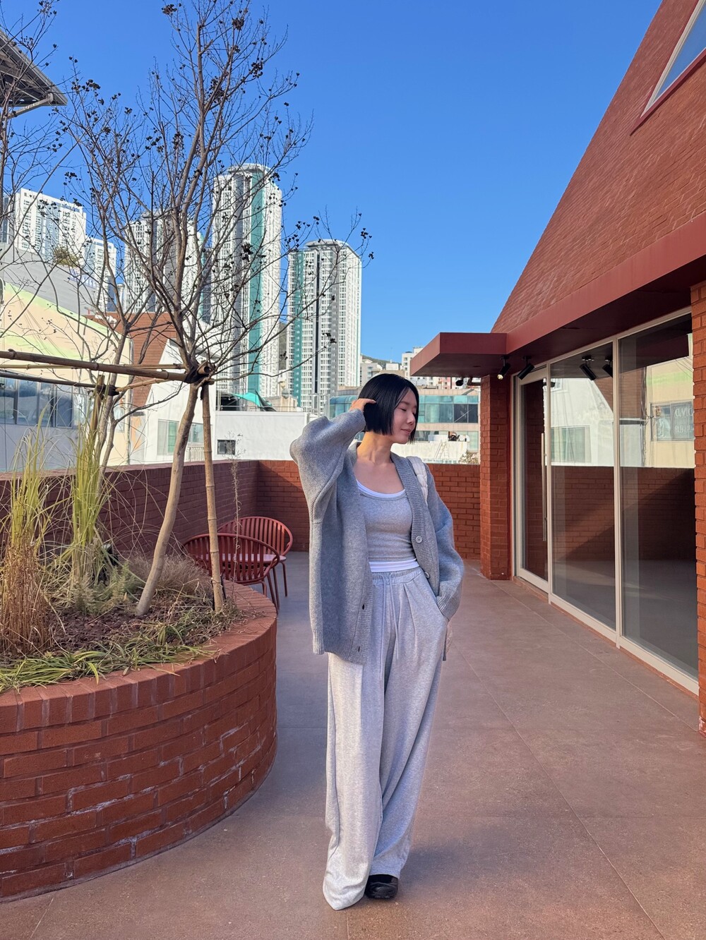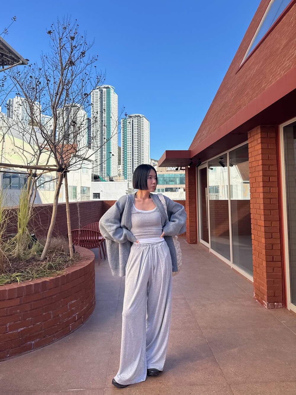 특징: 신축성 O, 비침 X, 안감 X, 두께감 보통, 무게감 보통