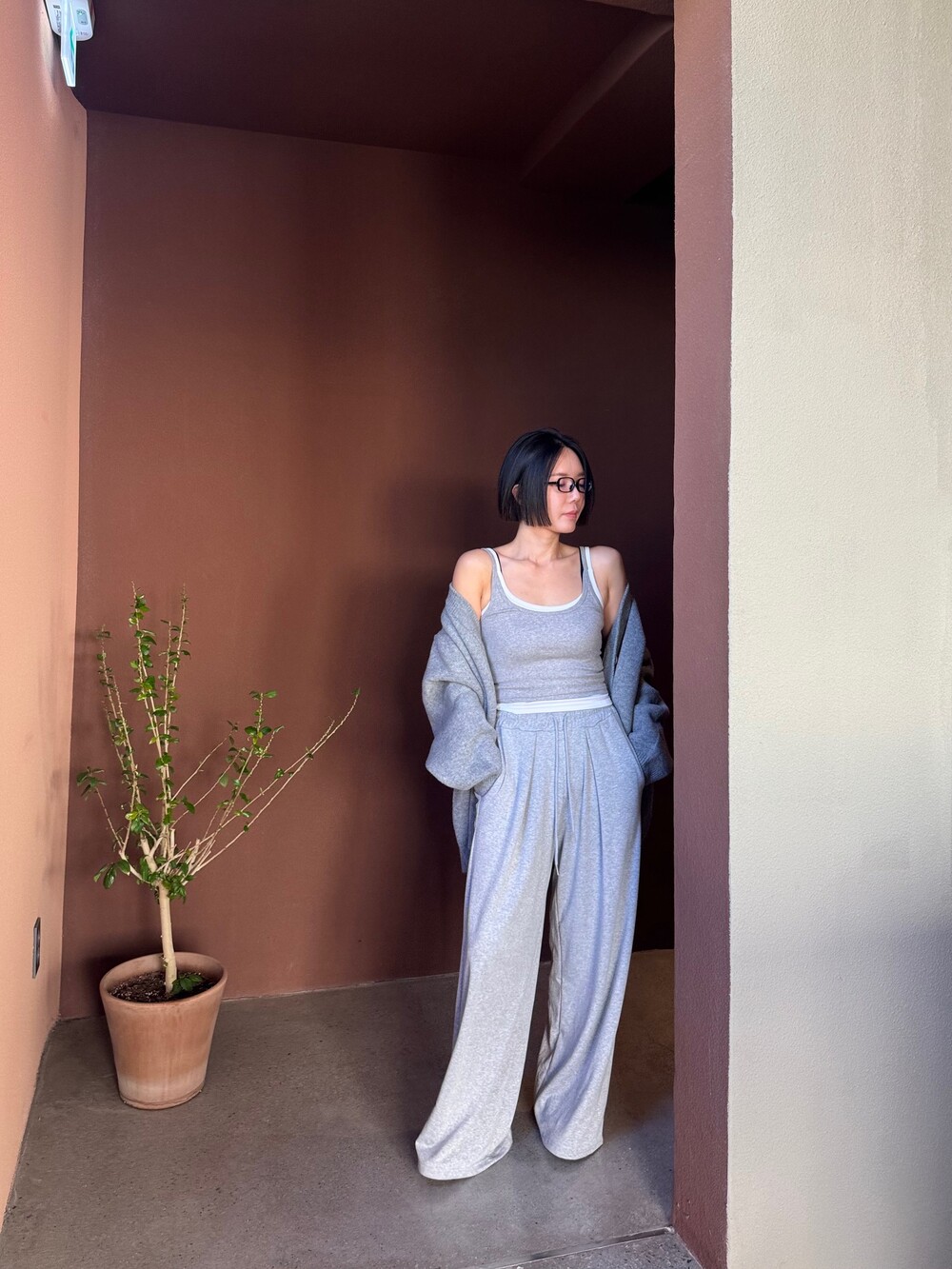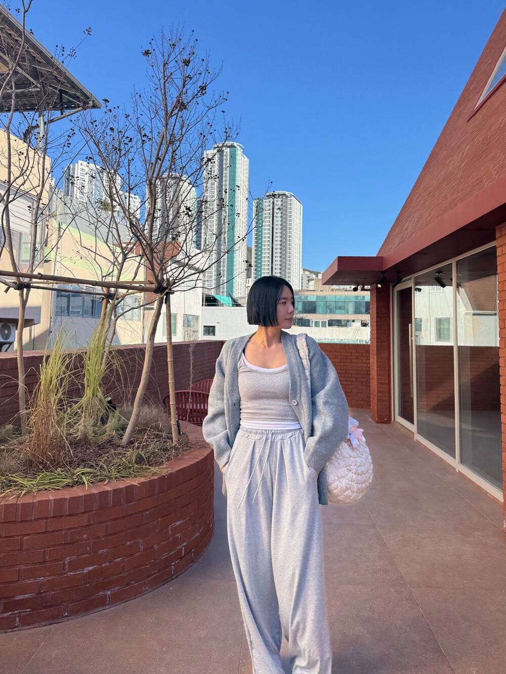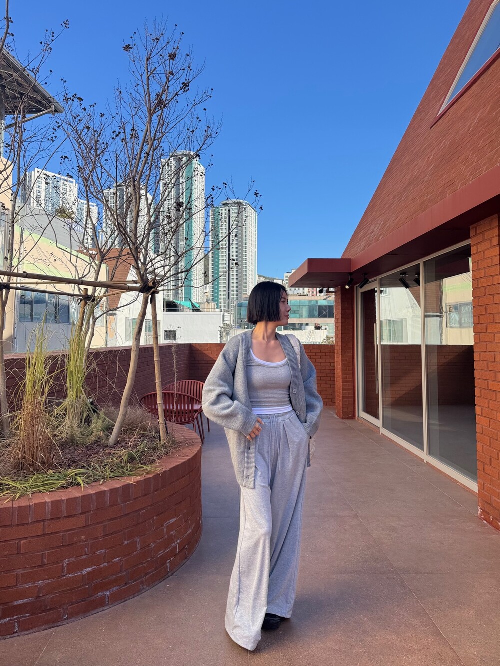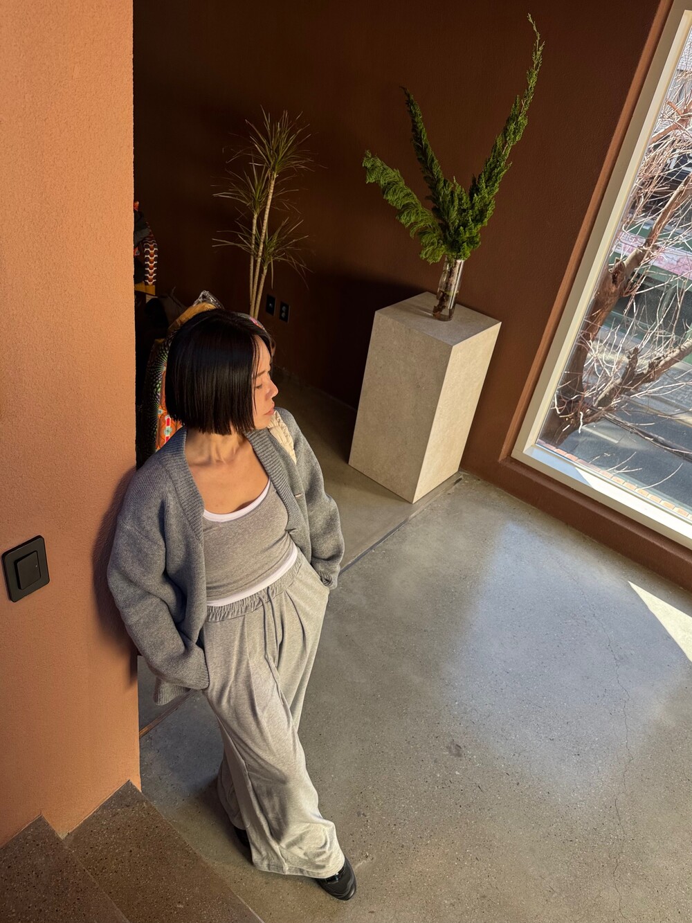특징: 신축성 O, 비침 X, 안감 X, 두께감 보통, 무게감 보통