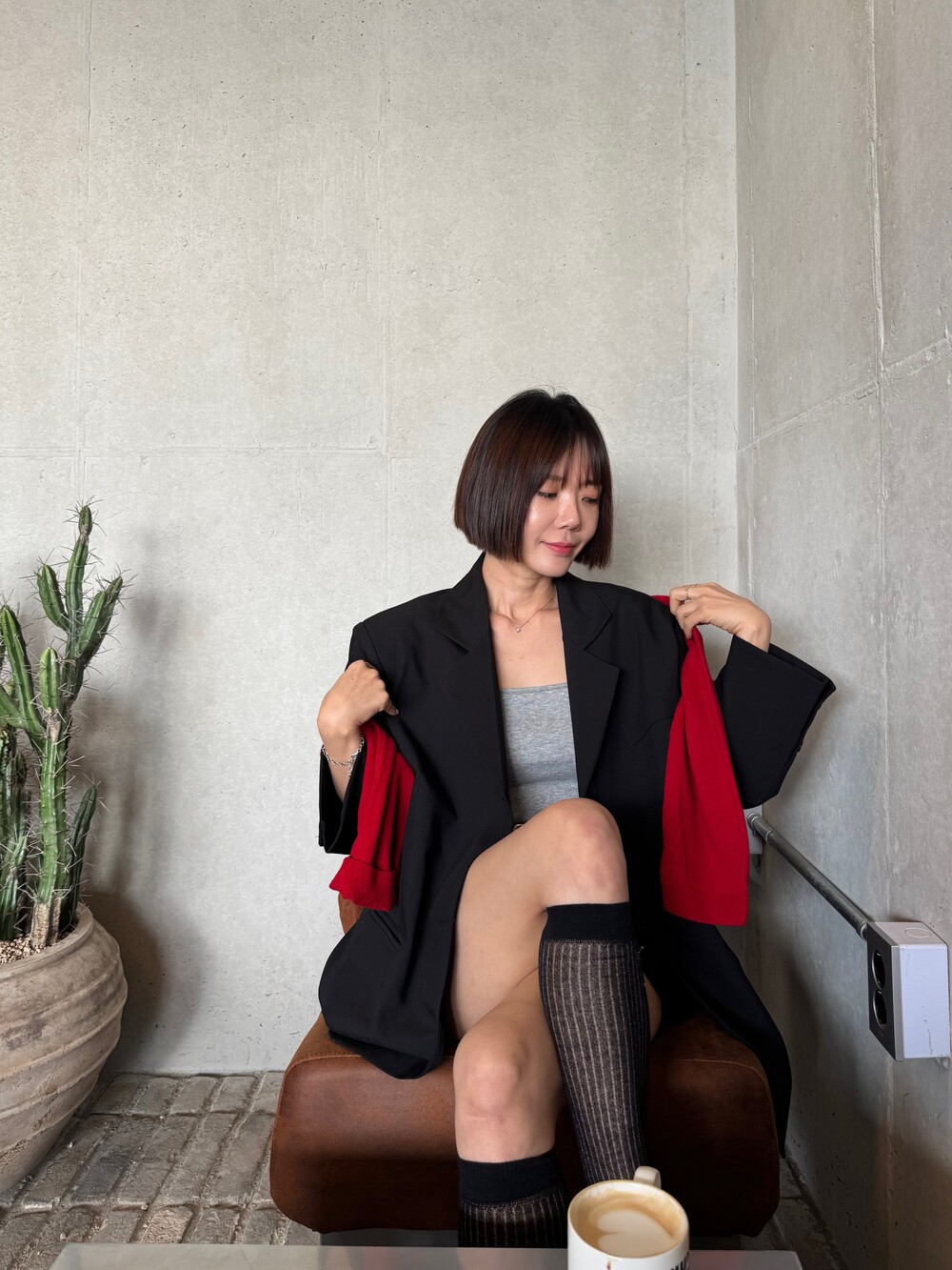 특징: 신축성 X, 비침 X, 안감 O, 두께감 보통, 무게감 보통