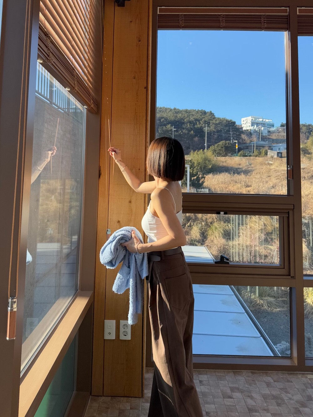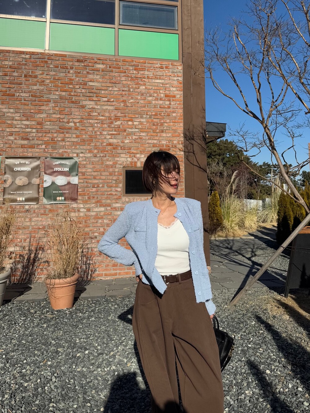 특징: 신축성 O, 비침 X, 안감 X, 두께감 보통, 무게감 보통