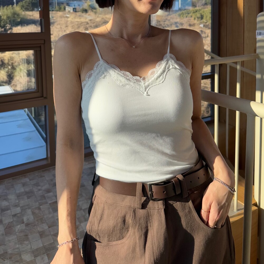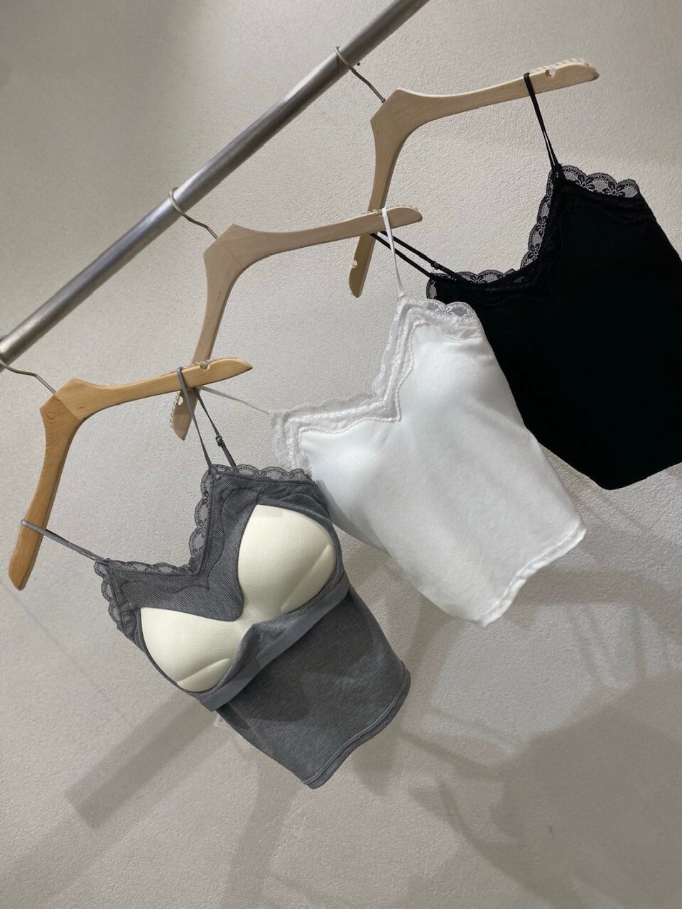 가슴 캡내장 되어 있는 소프트레이스 나시예요